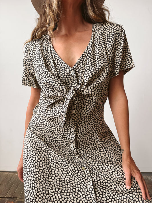 Black and White Striped 70s Dress (M)