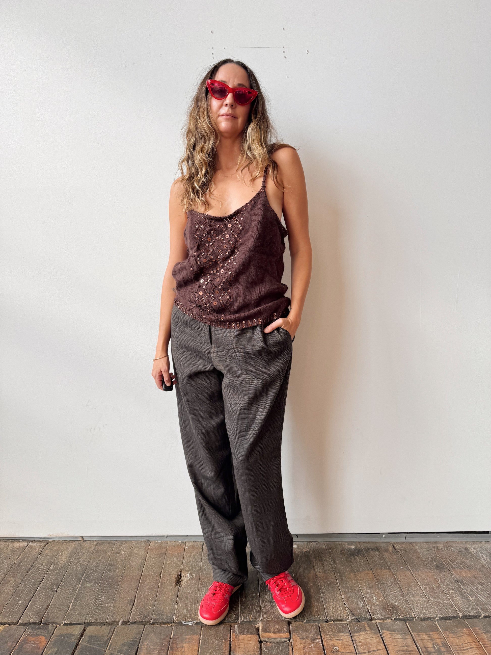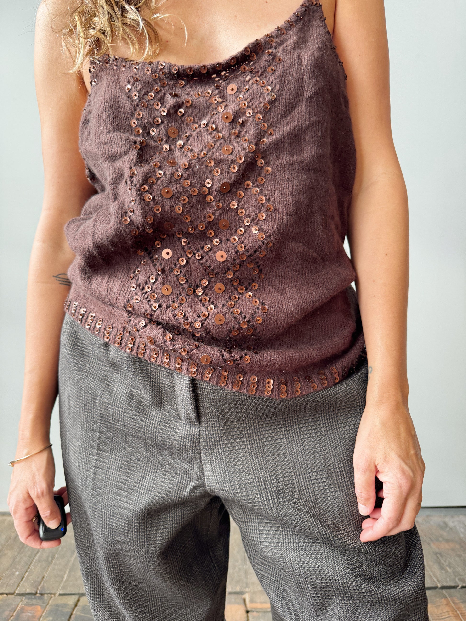 Angora Brown and Sequin Tank Top (XL)