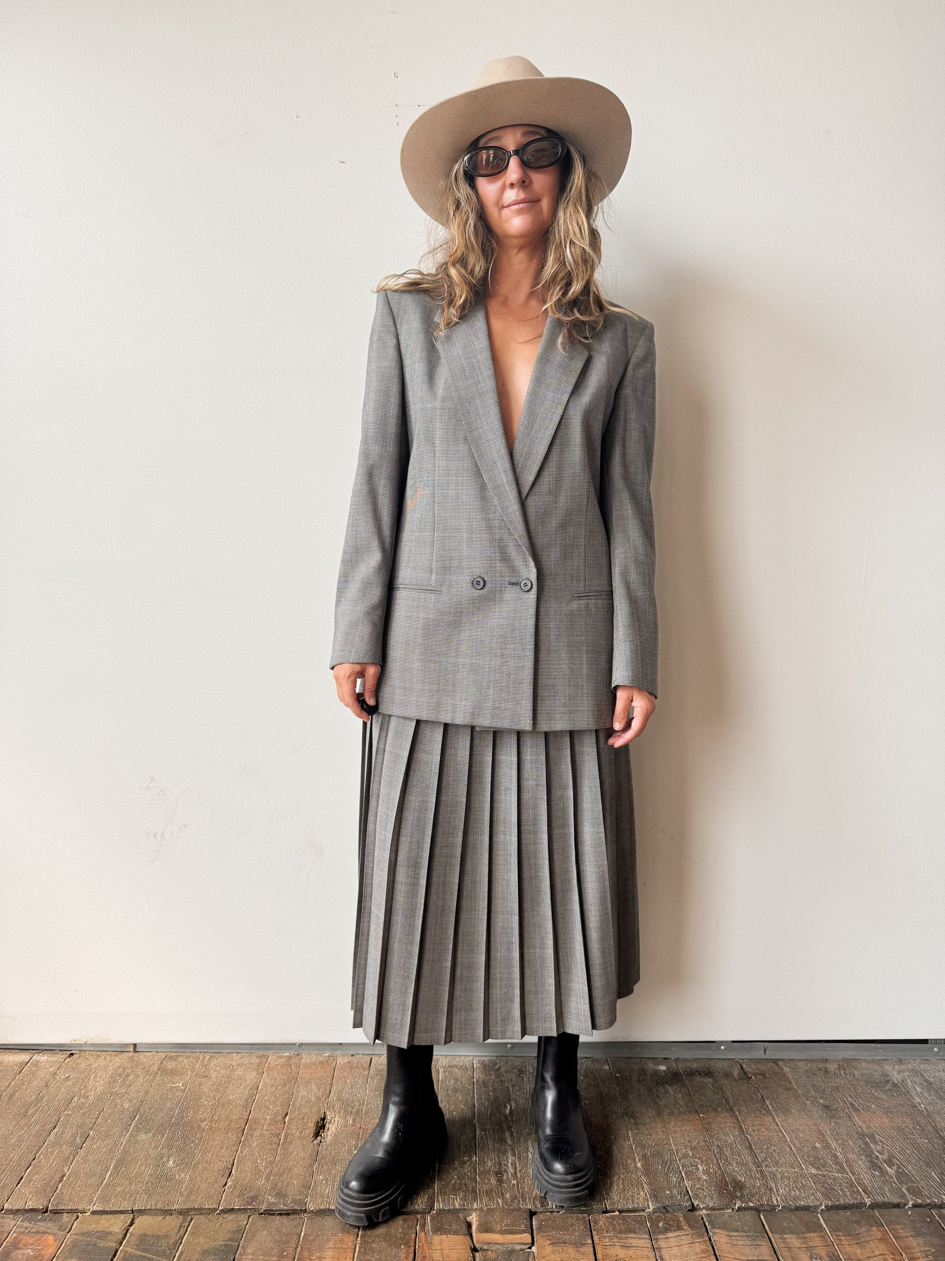 Houndstooth 90s Pleated Skirt with One Button Blazer Skirt Suits (28")