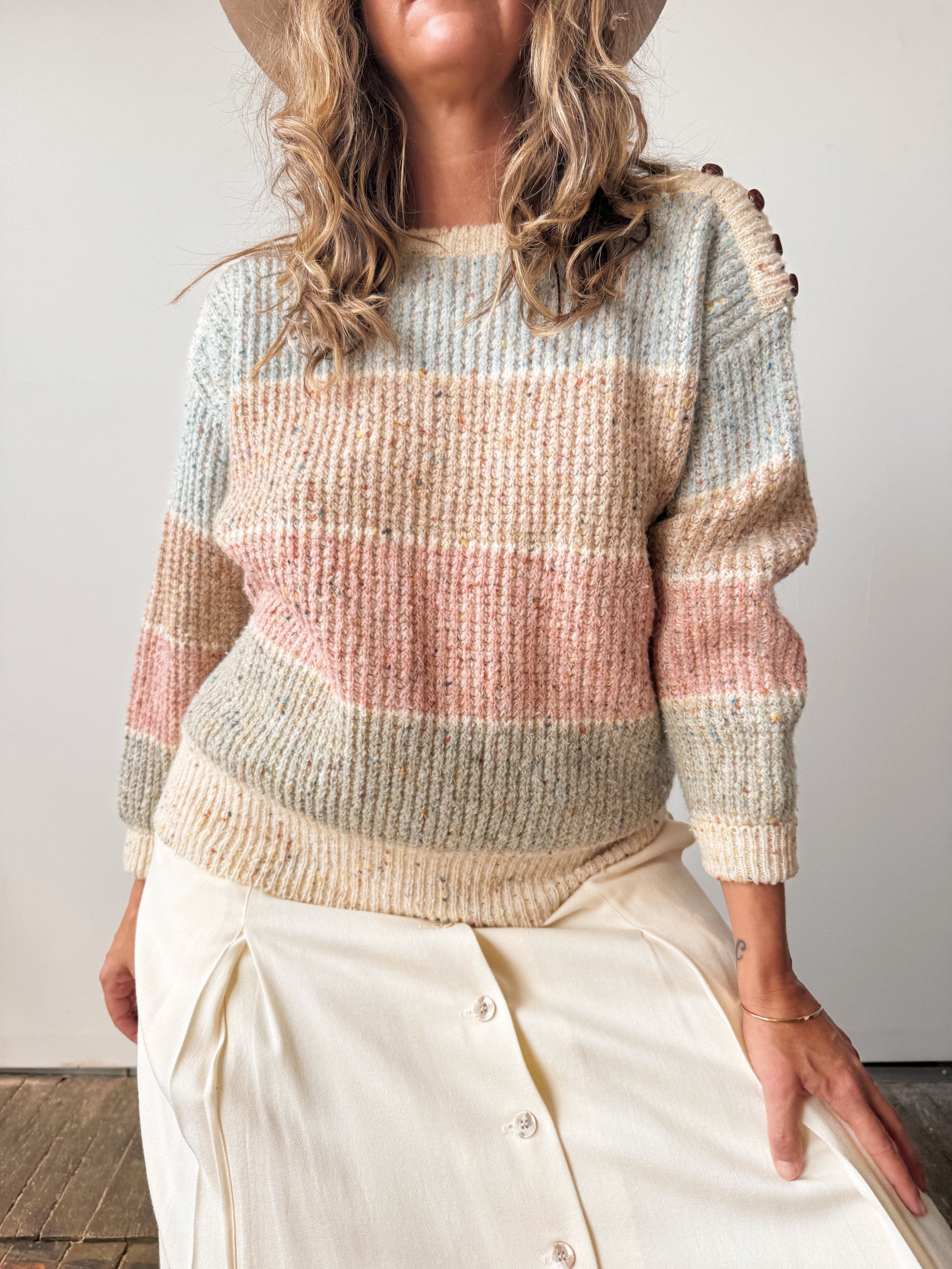 Neapolitan Knit 80s Sweater with Button Details (S)