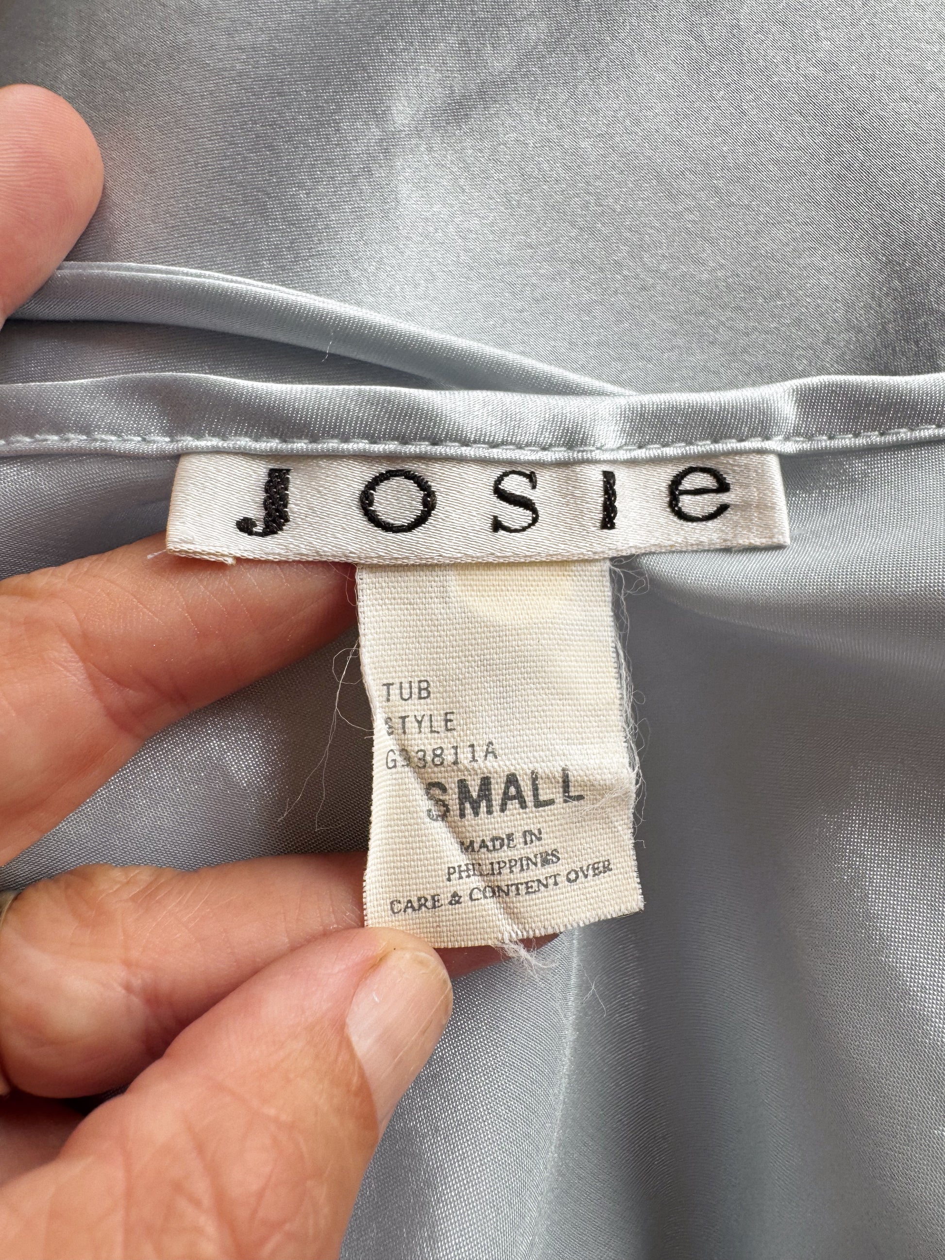 80s Embroidered Satin Baby Blue Slip Dress (S)