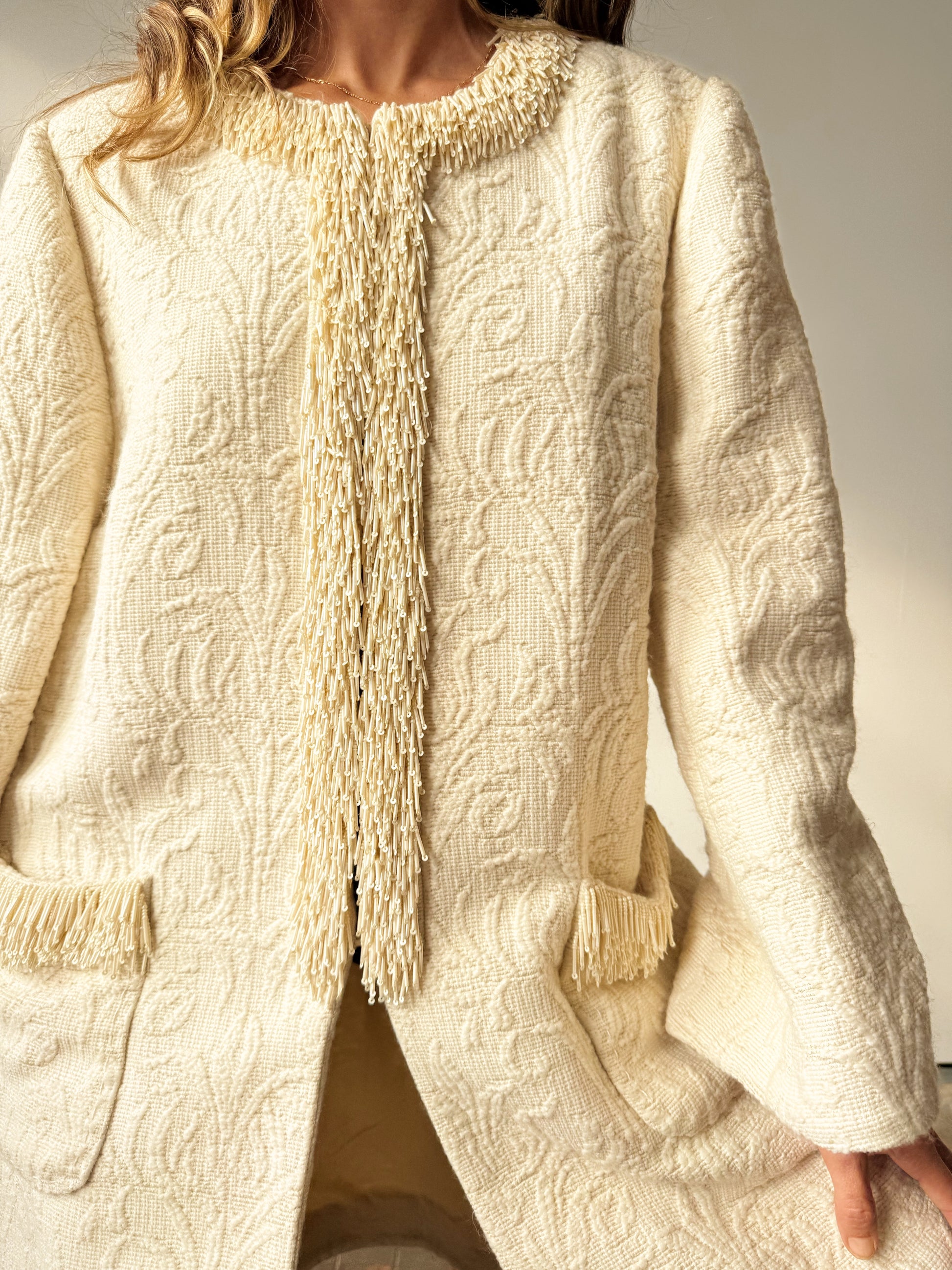 Ivory Bead and Texture Duster Coat, Contemproary (L)