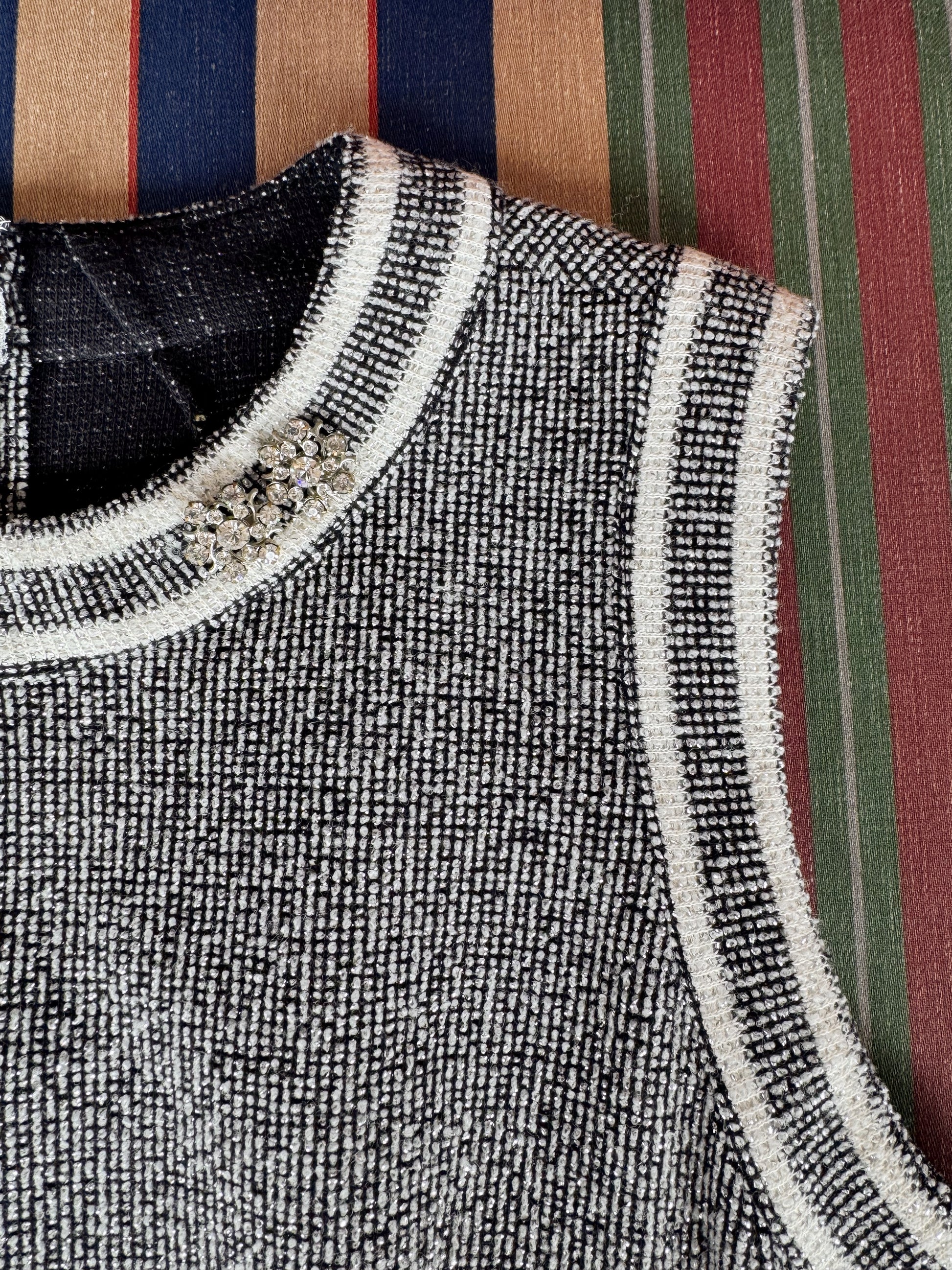 Vintage 70s PLW Silver Metallic Dress with Rhinestone Details (M)