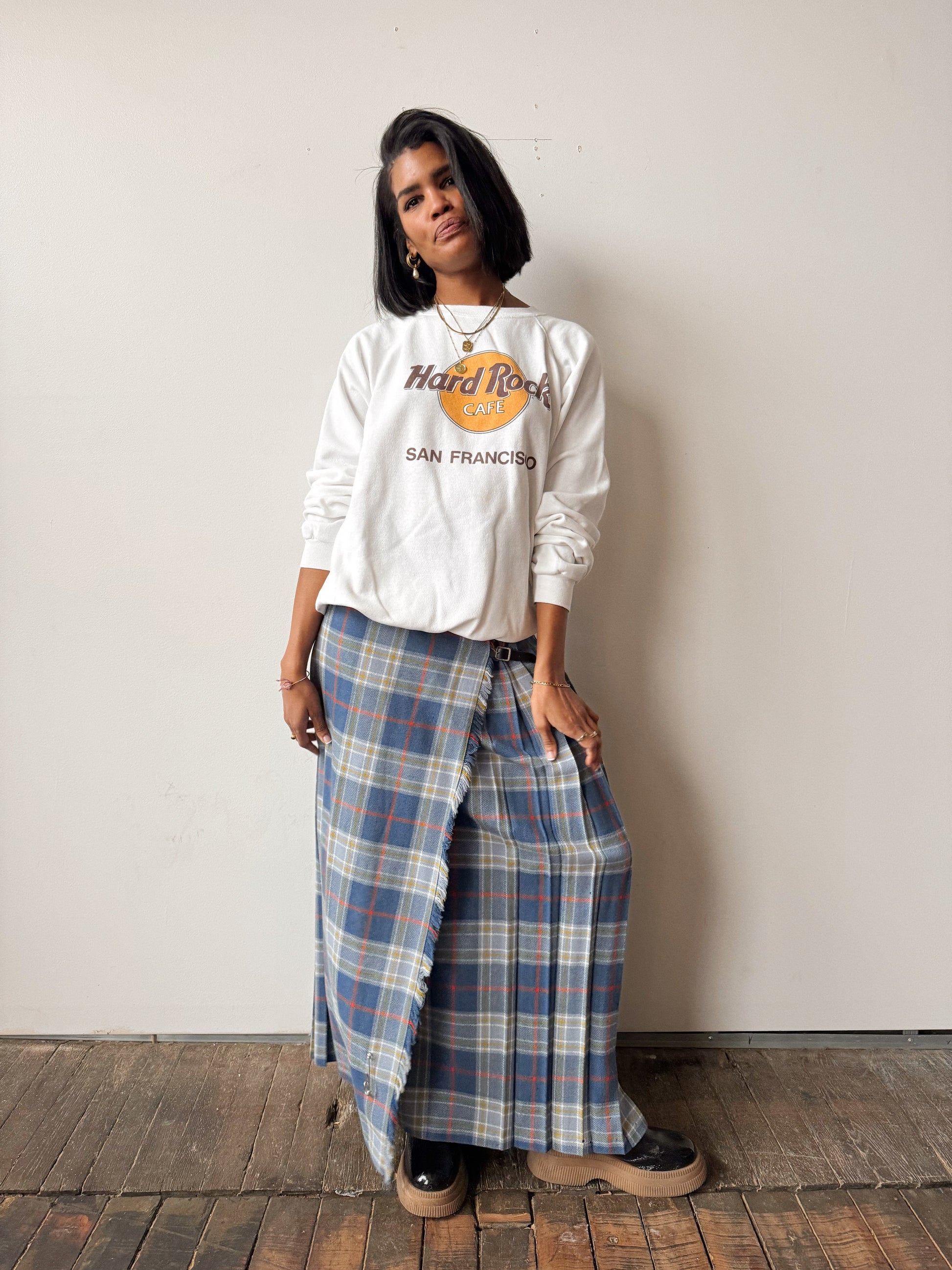 Pleated Plaid Wool Scotland Wrap Skirt (28")