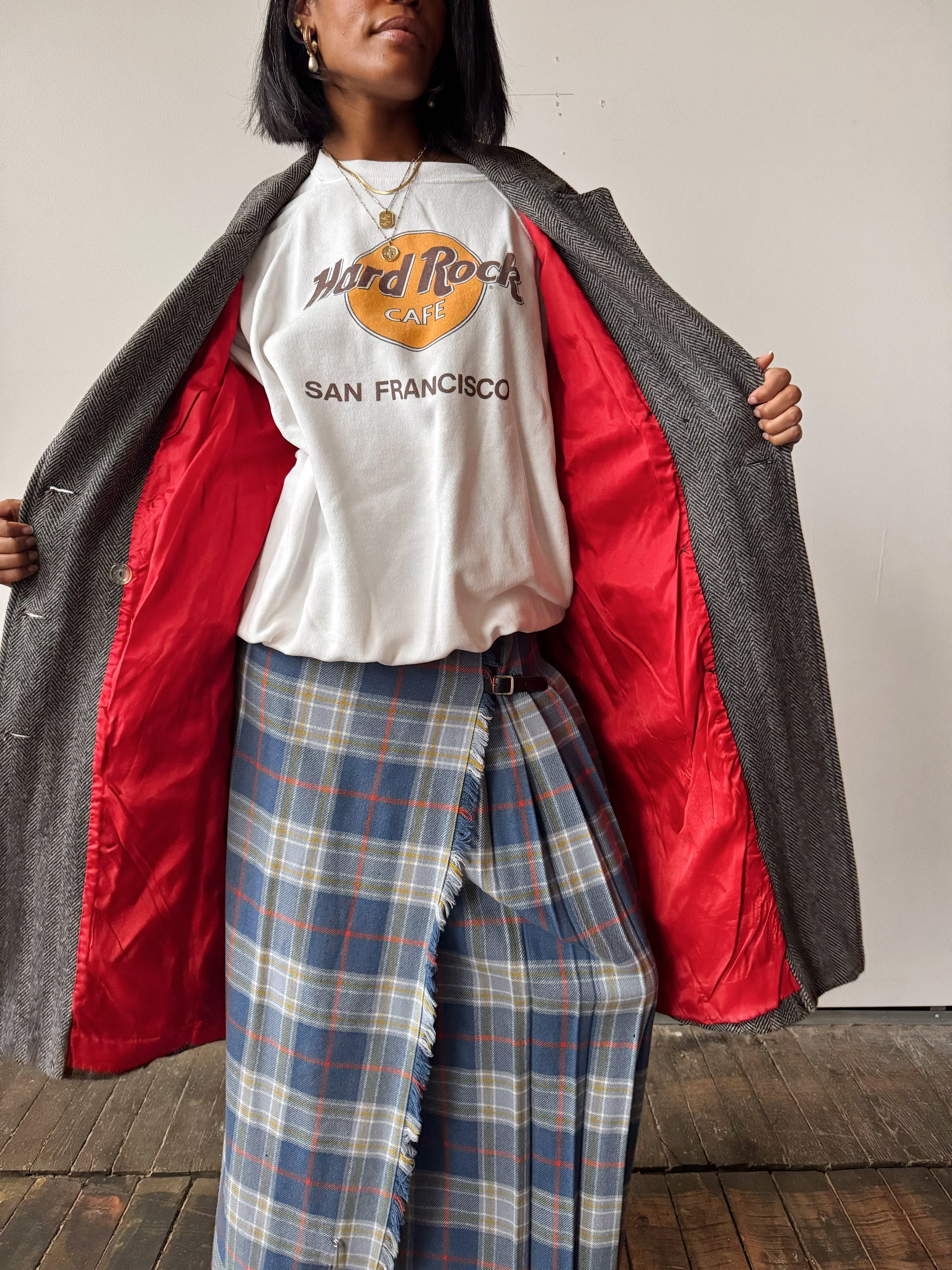 Herringbone Wool Coat with Red Sateen Lining (M)