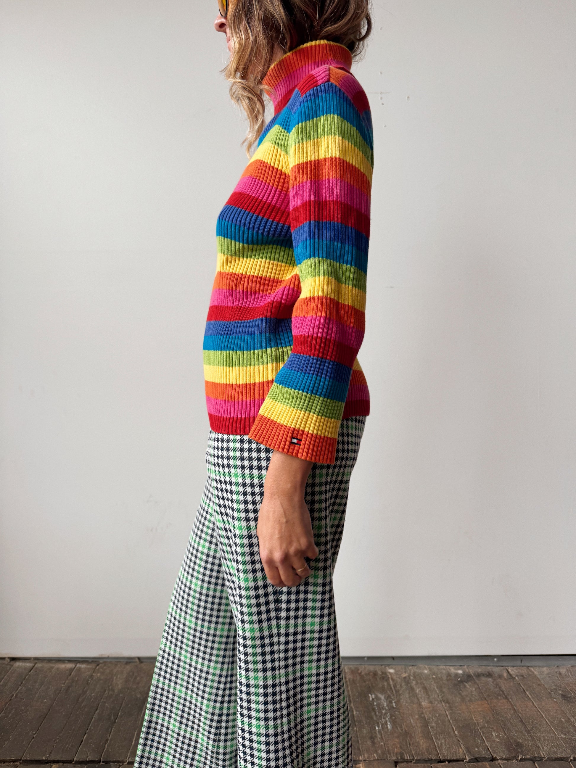 70s Polyester Plaid Houndstooth Bell Bottom Trouser Pant (25")
