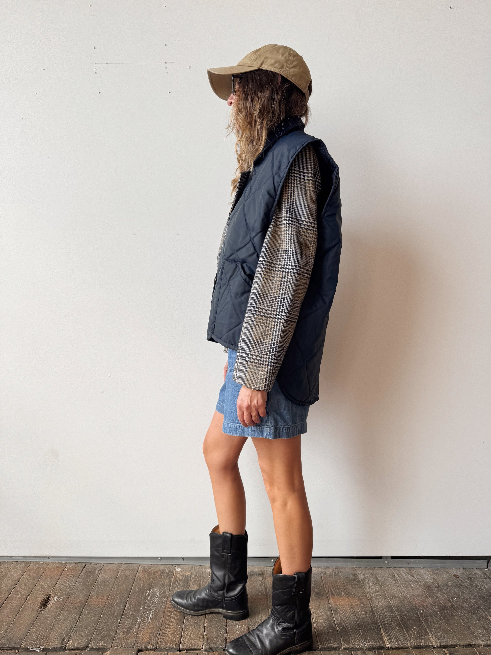 70s Dickson Navy Quilted Vest (L)