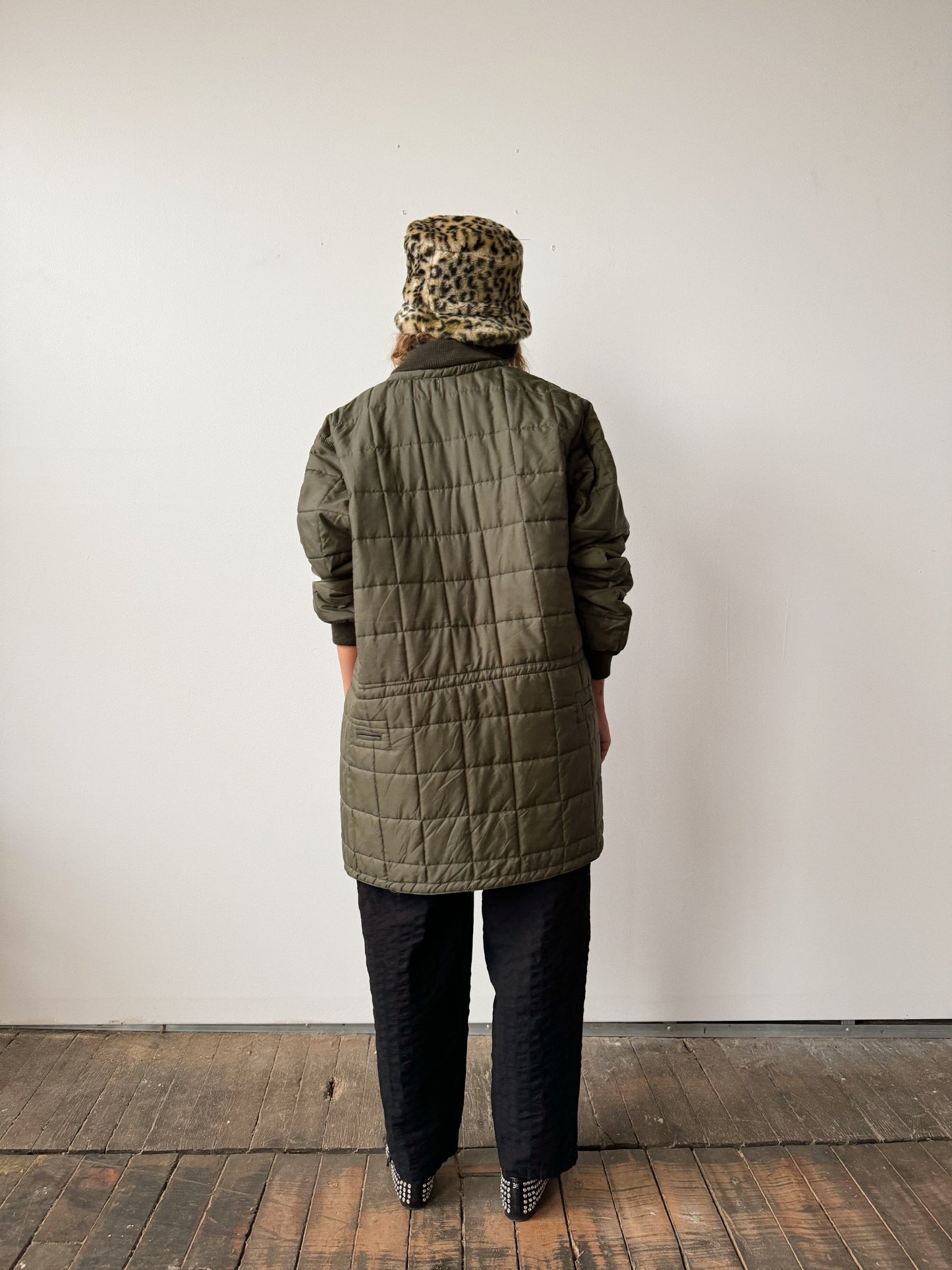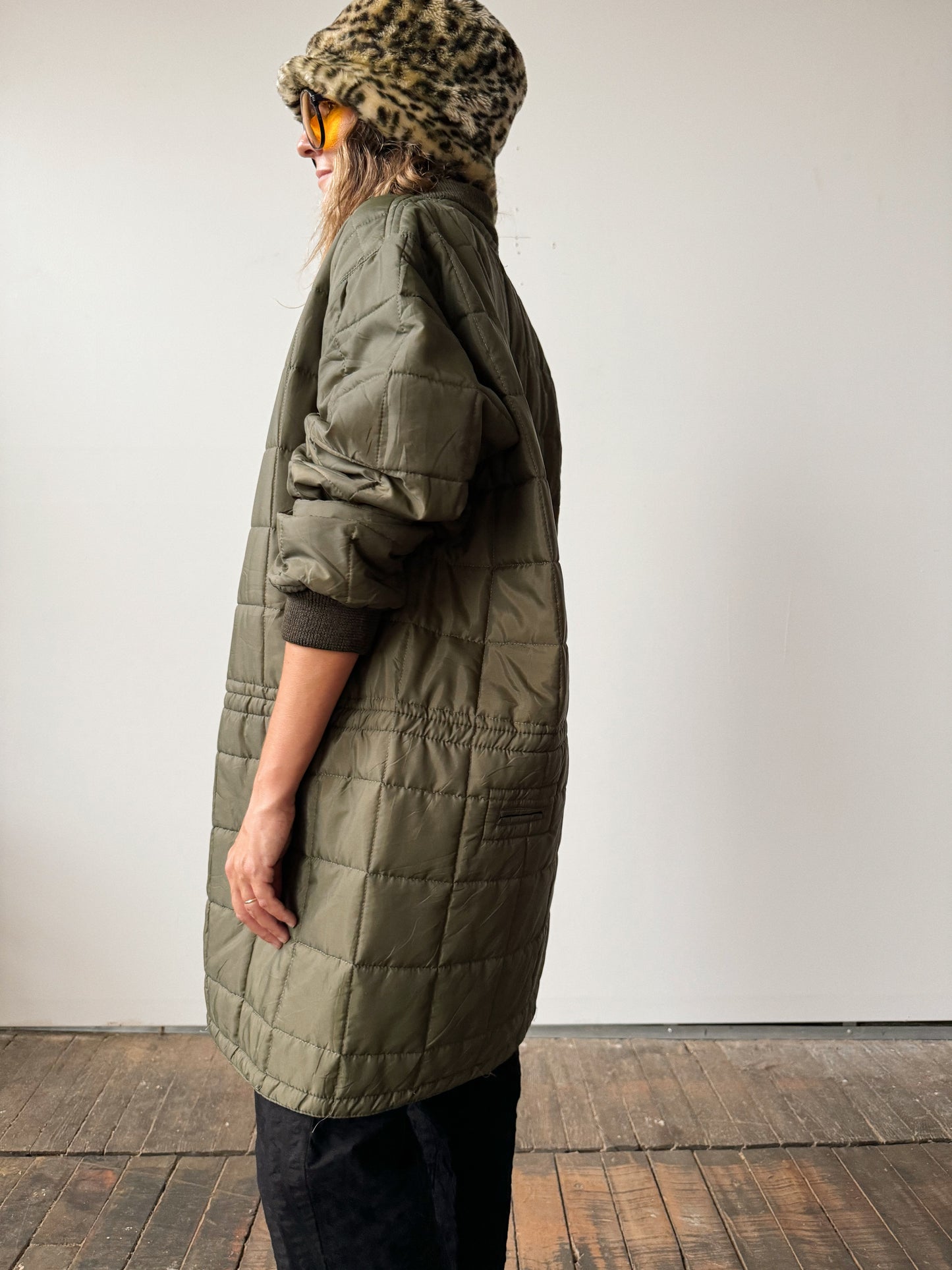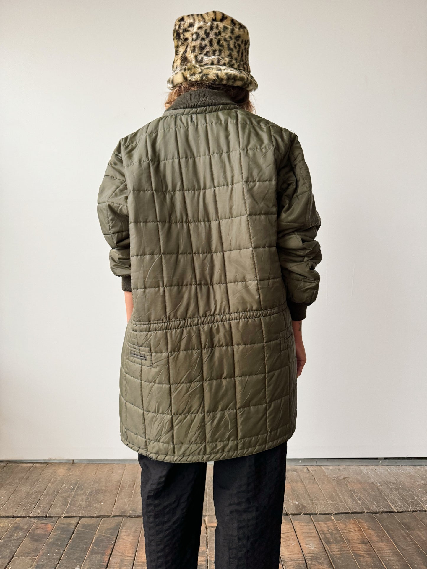 Military Quilted Jacket with Drawstring Waist (M)