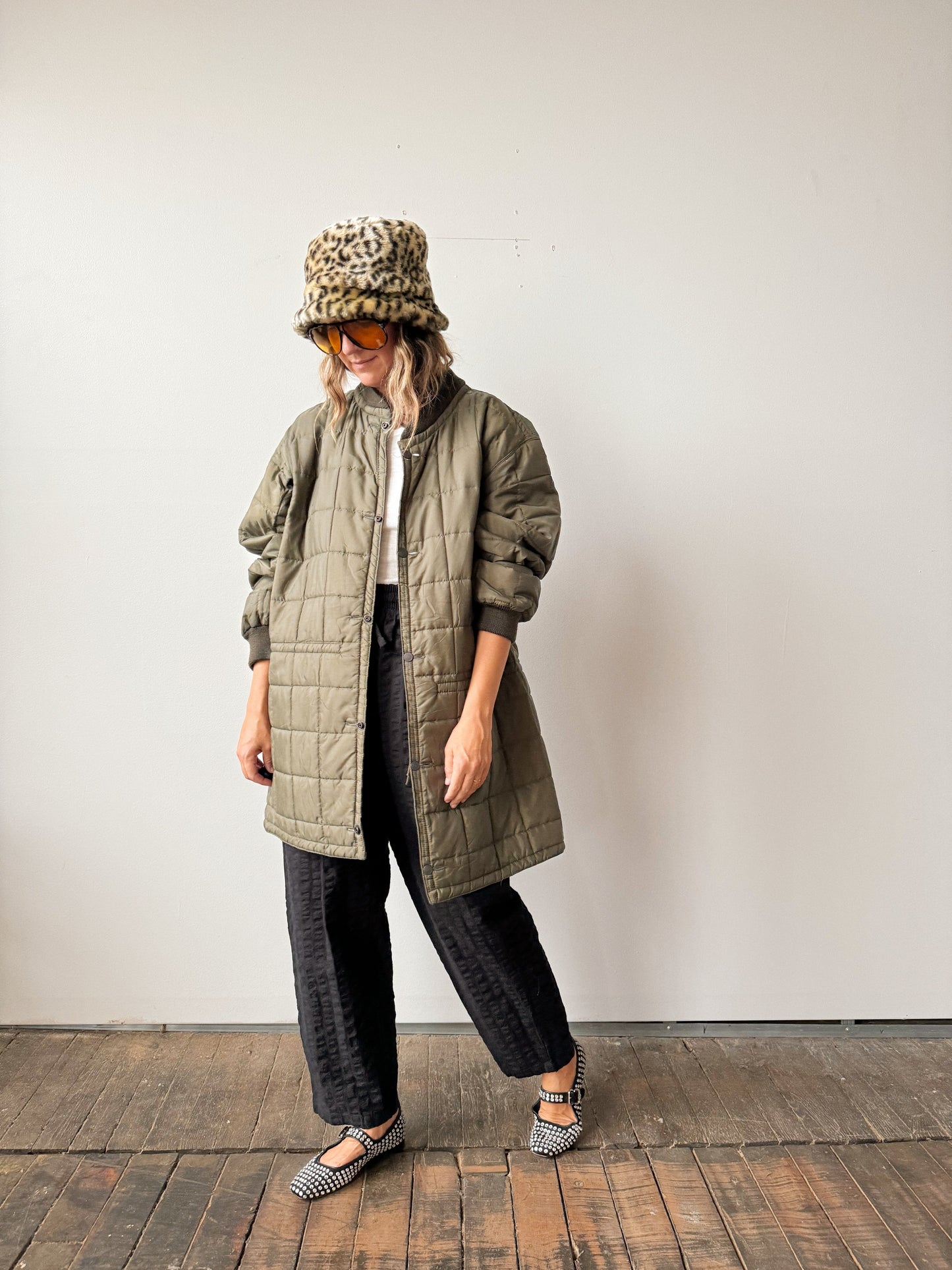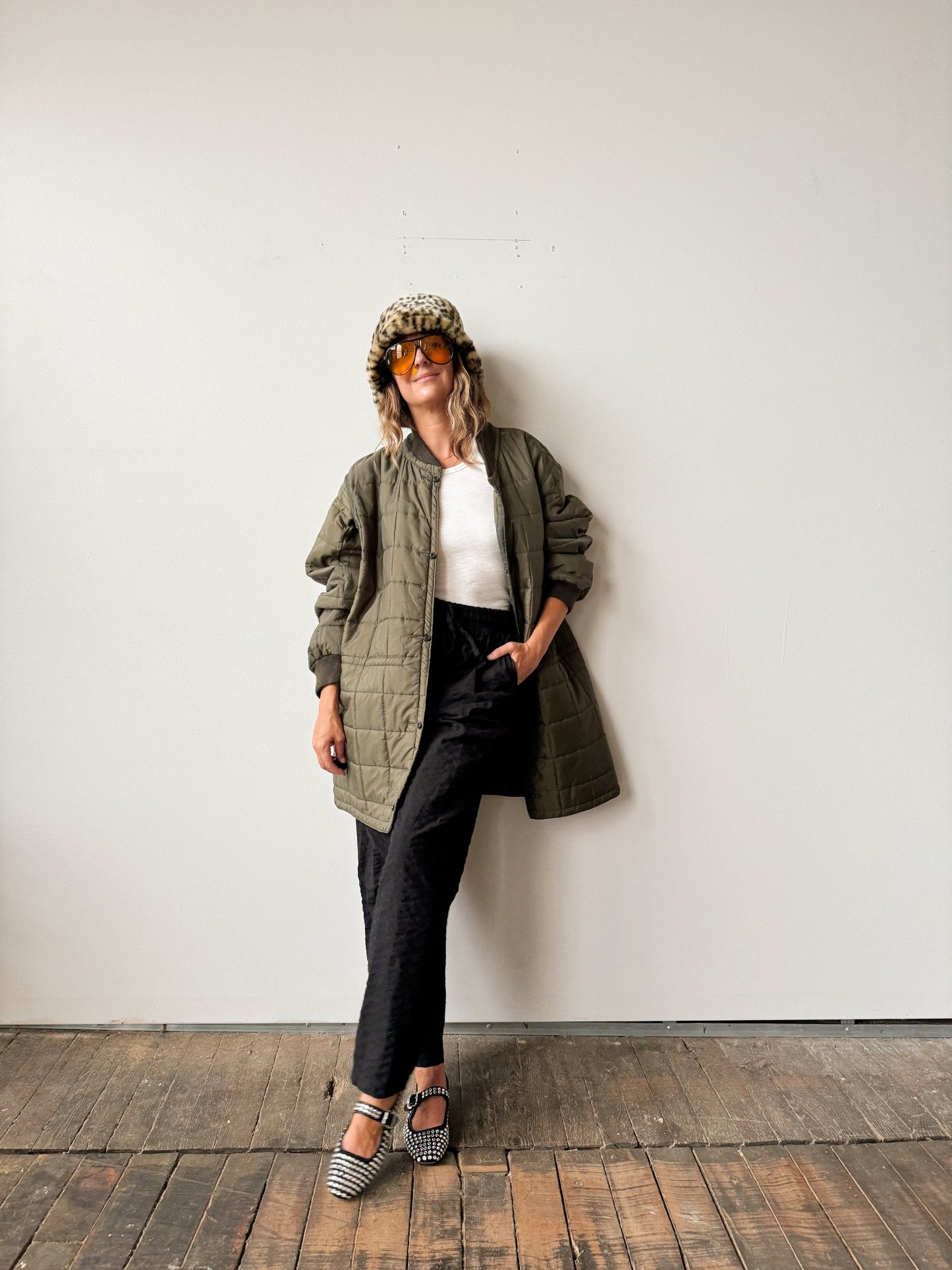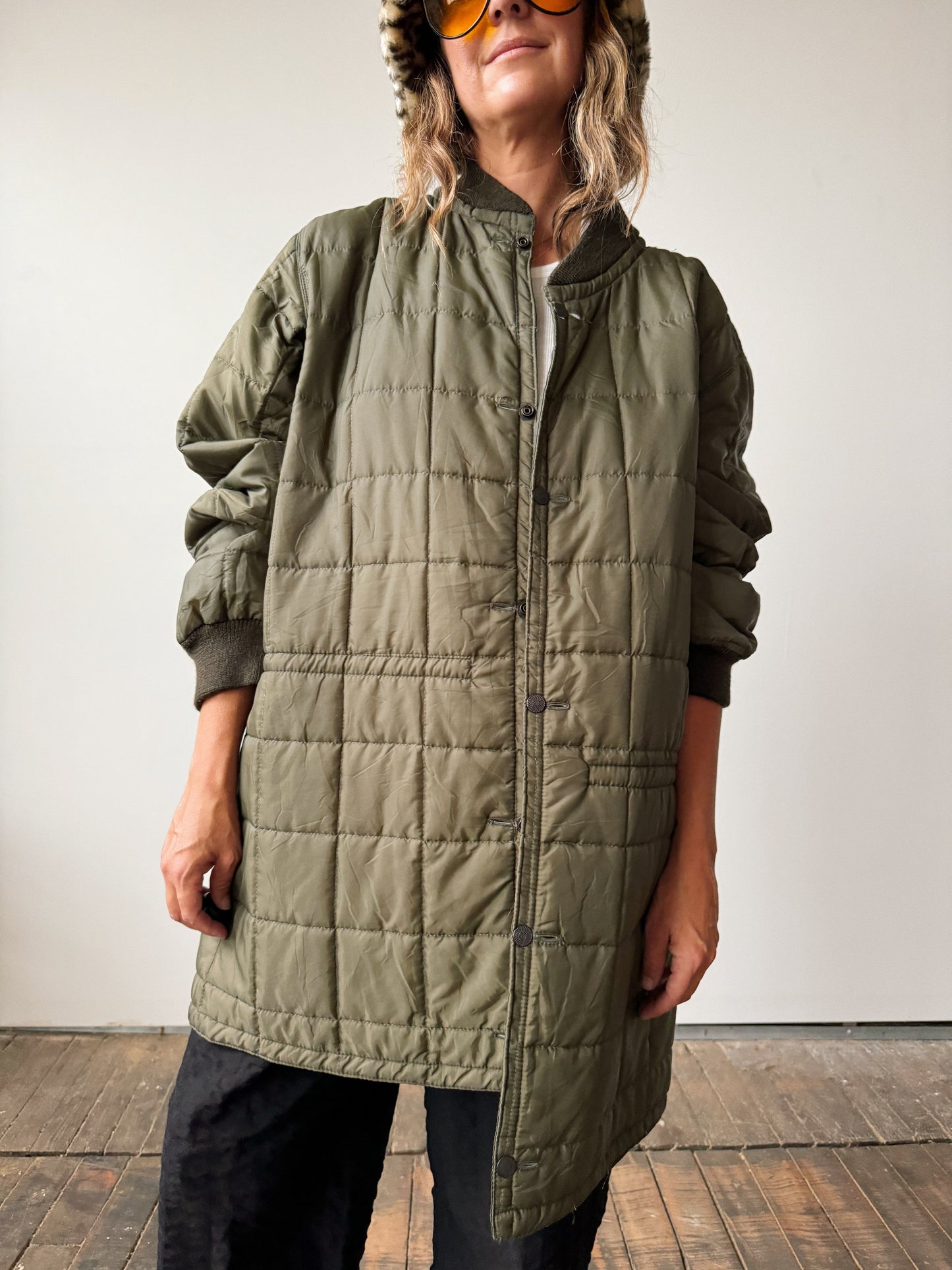 Military Quilted Jacket with Drawstring Waist (M)