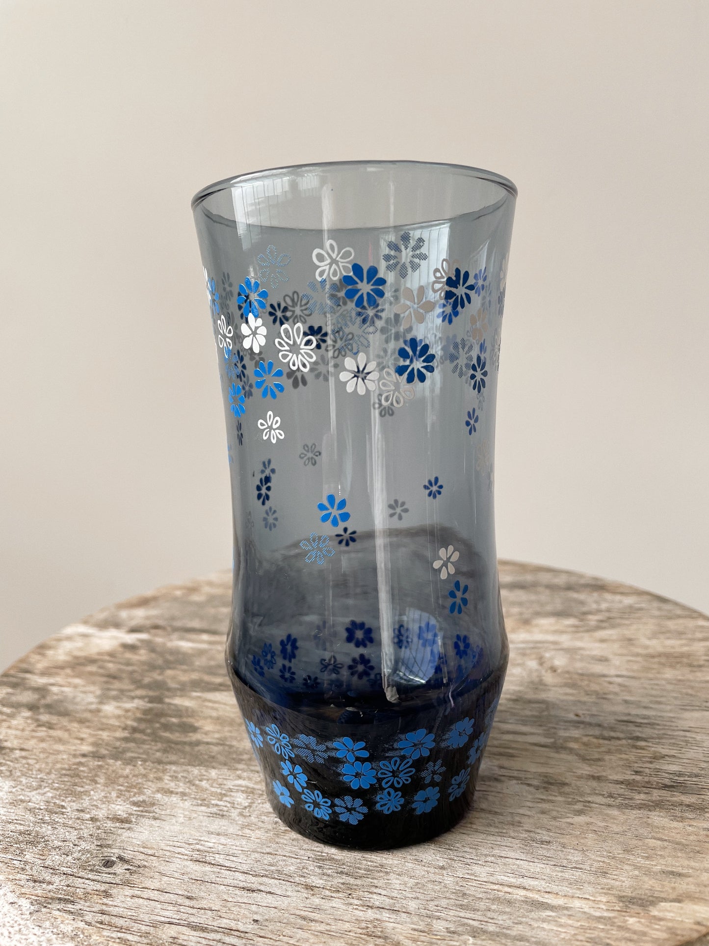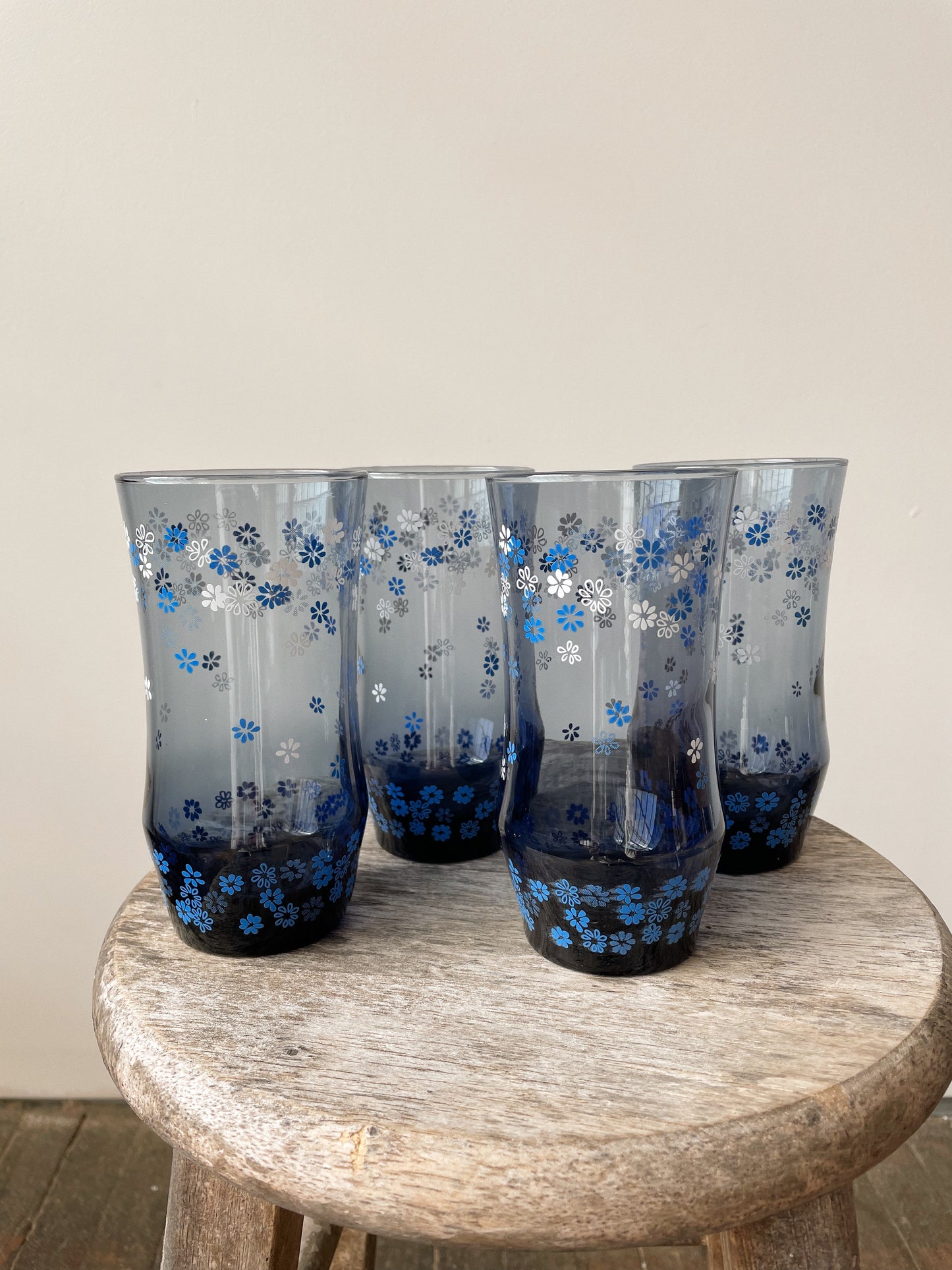 Libbey Blue Daisy Glasses MCM, Set of 4