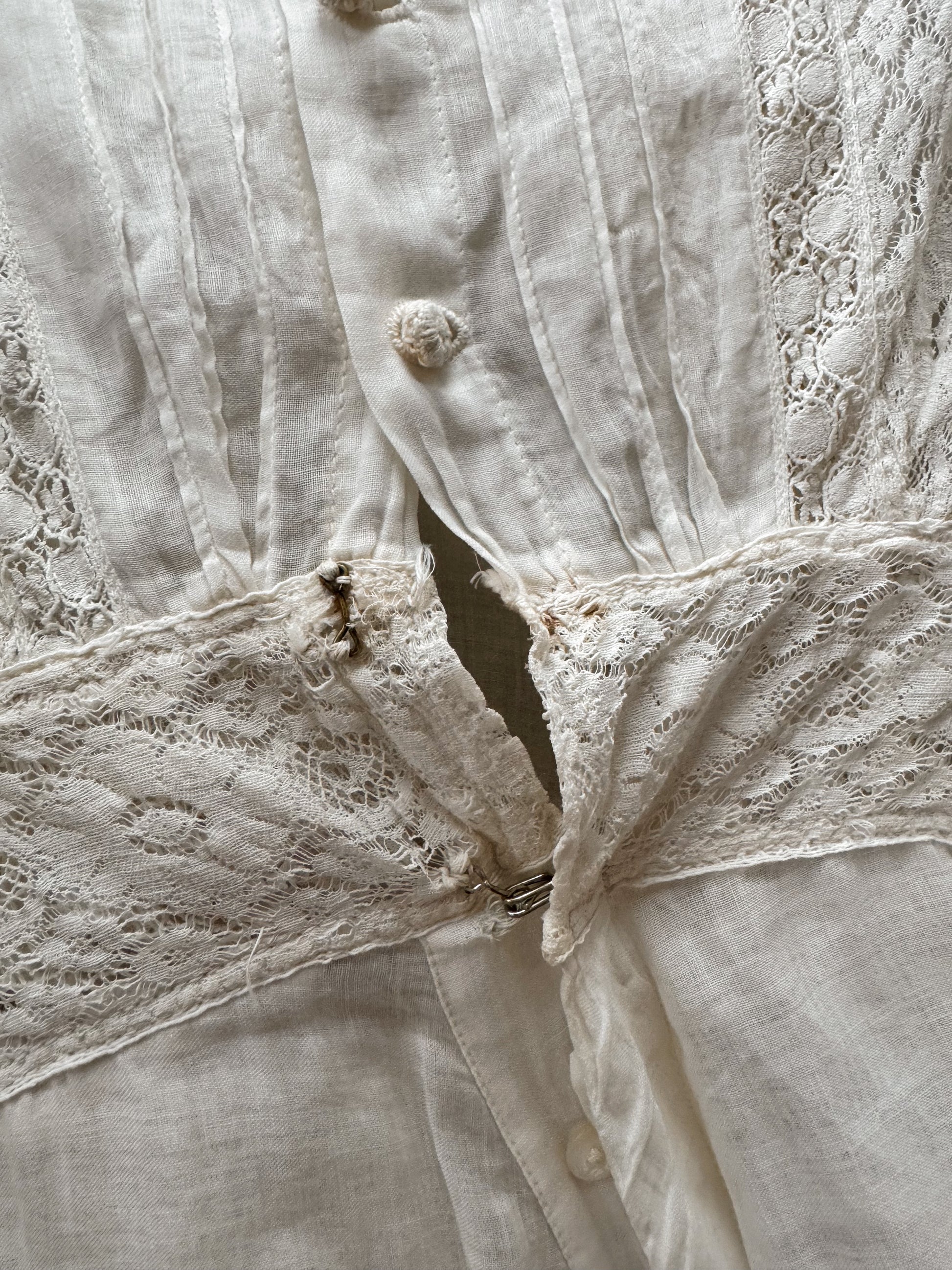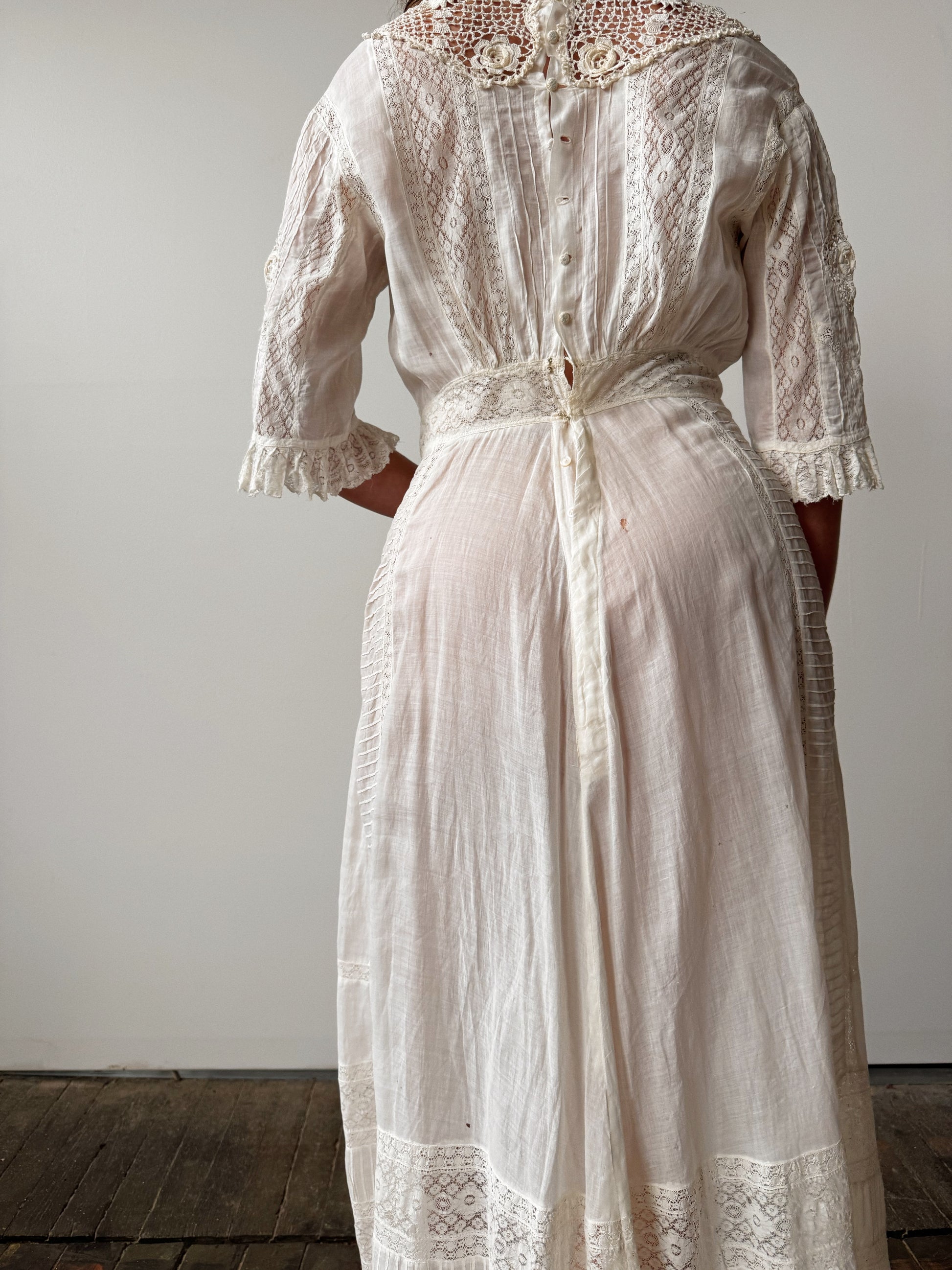 Antique Edwardian 1900s White Cotton Lace Dress (M)