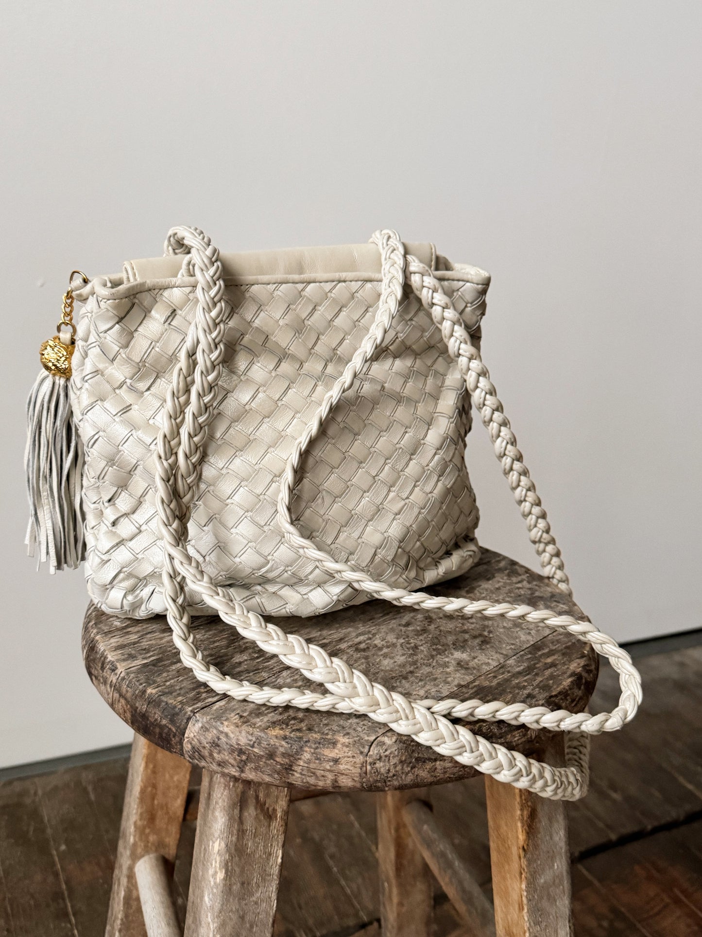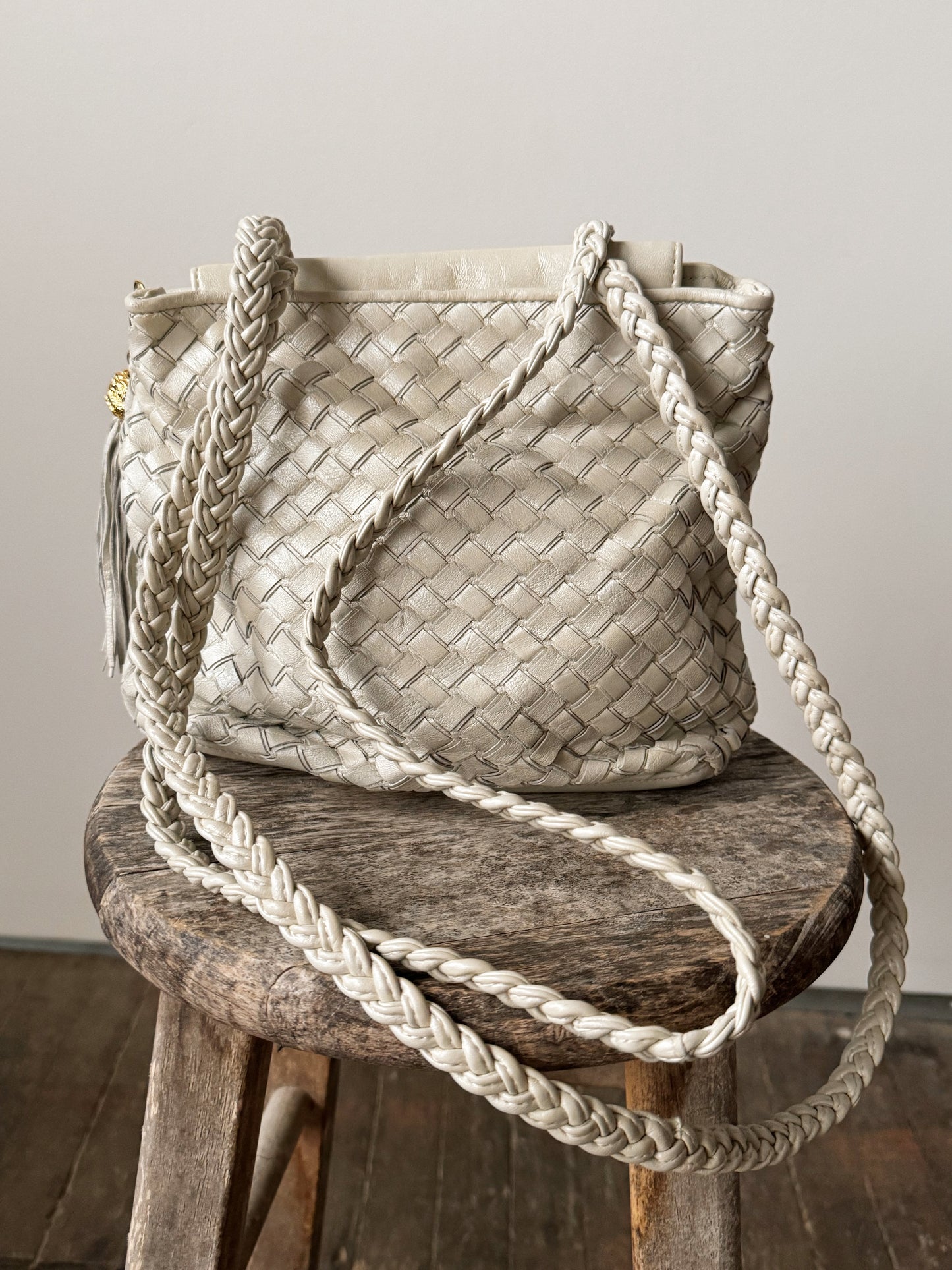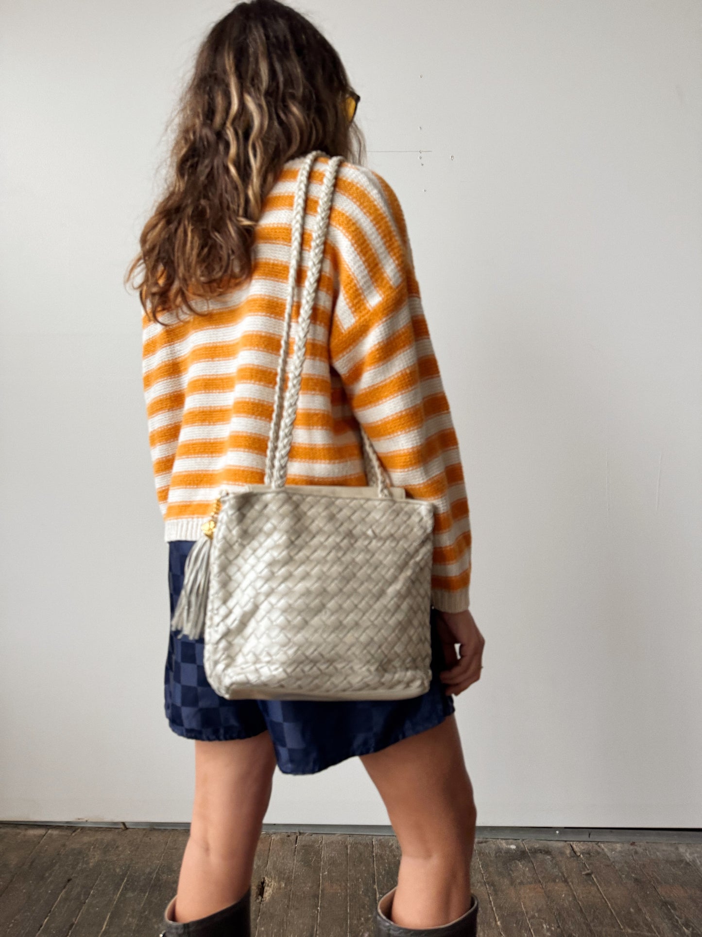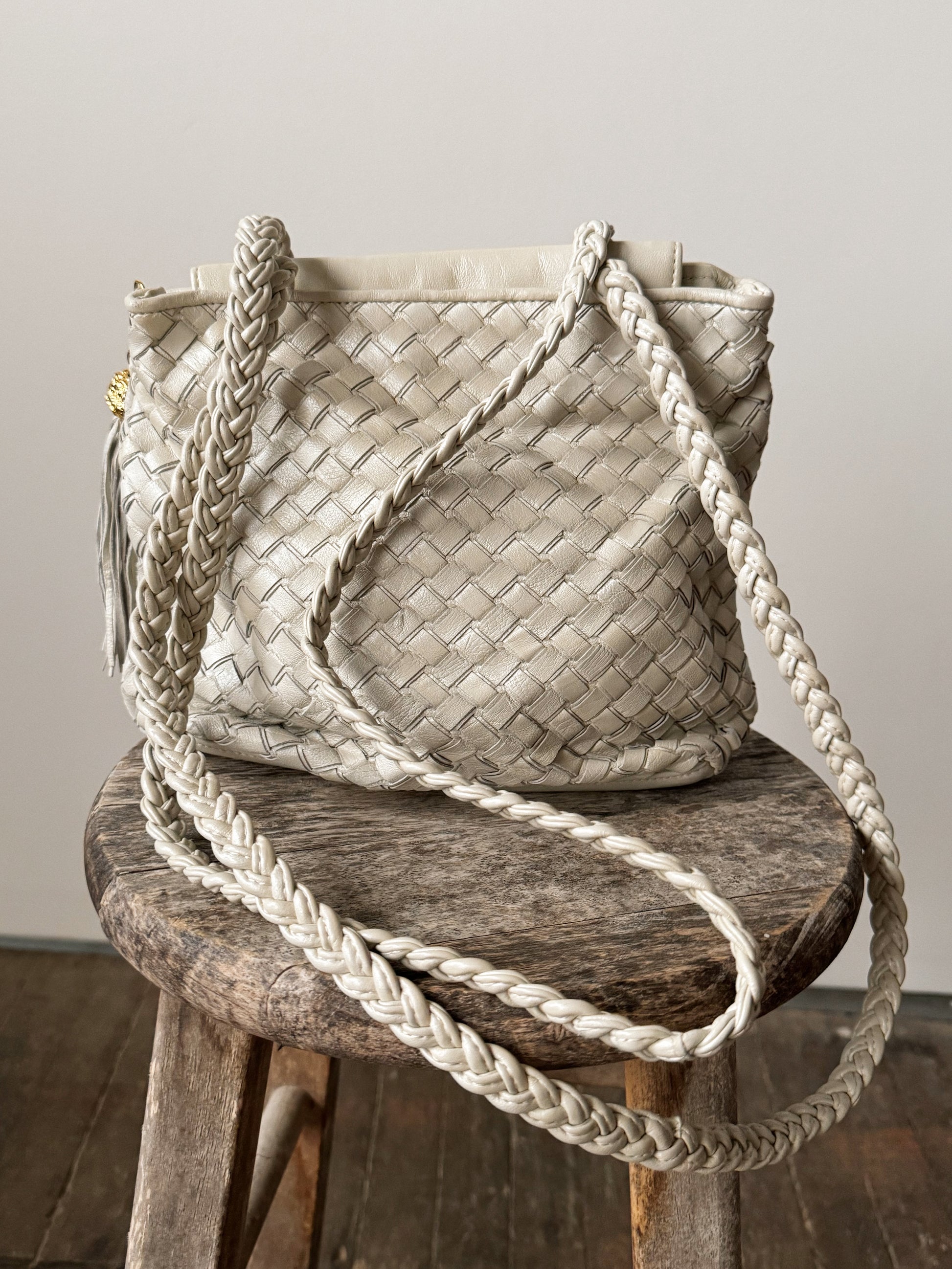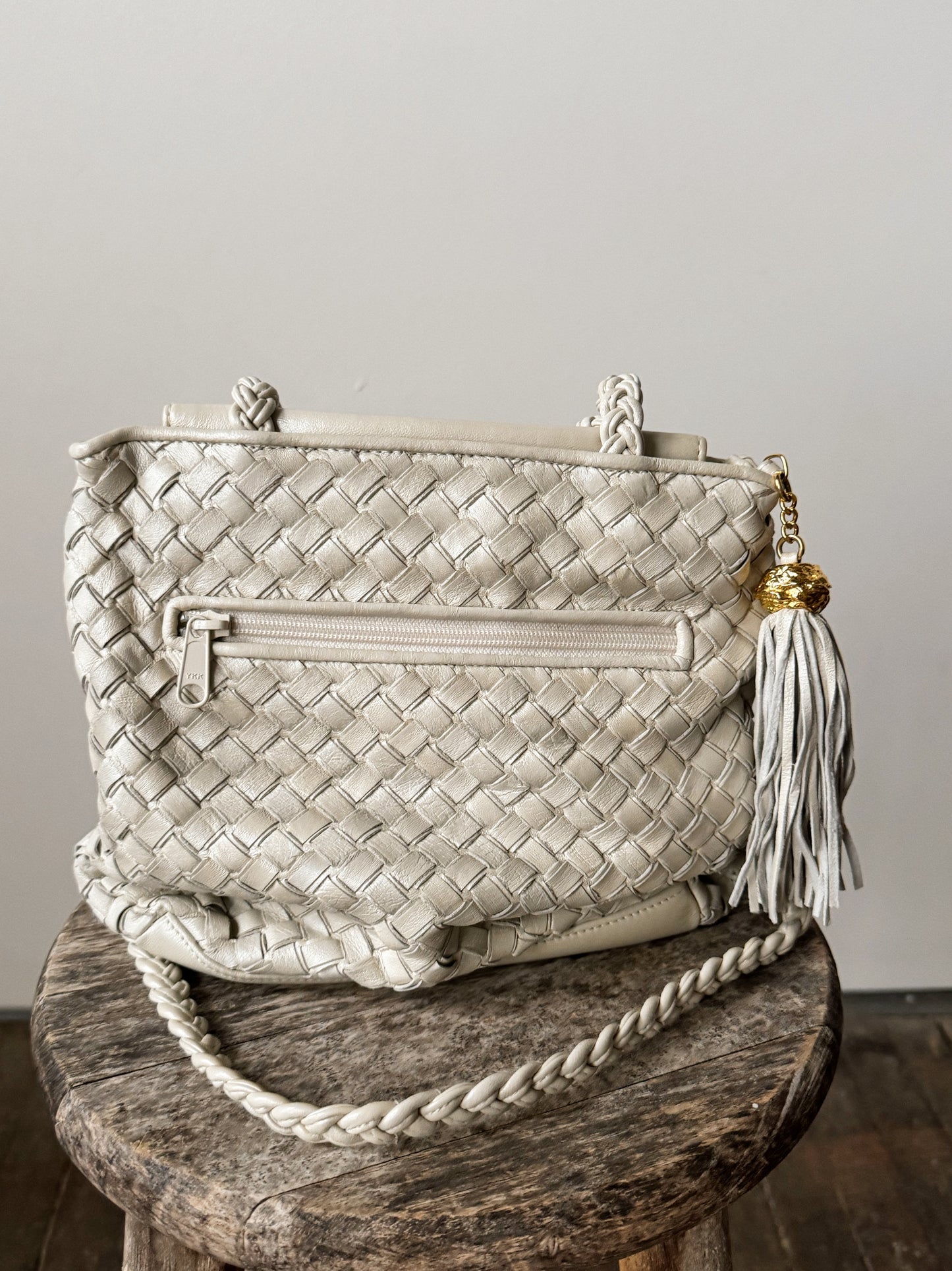 Ganson Woven Leather Shoulder Bag with Leather Tassel
