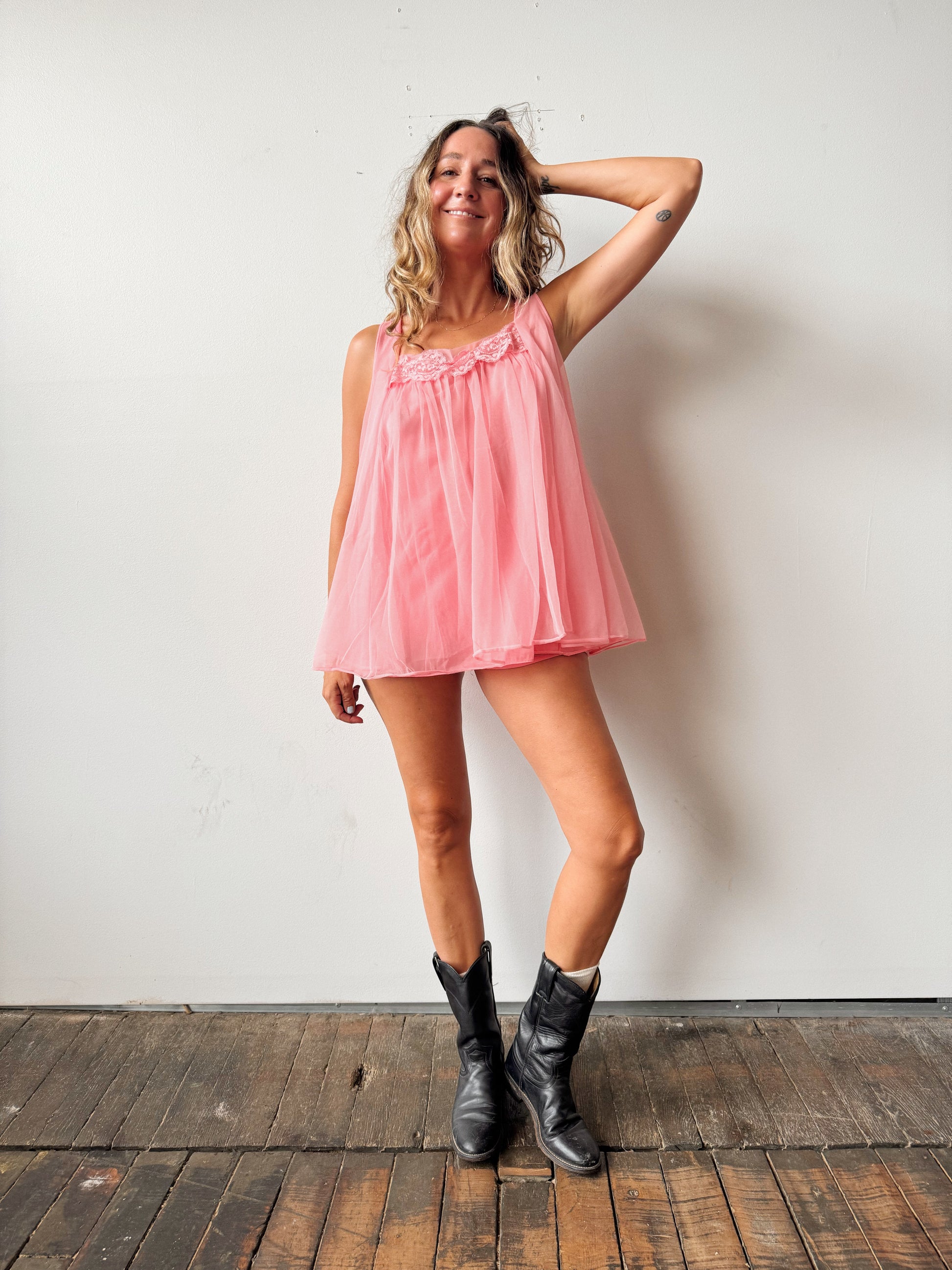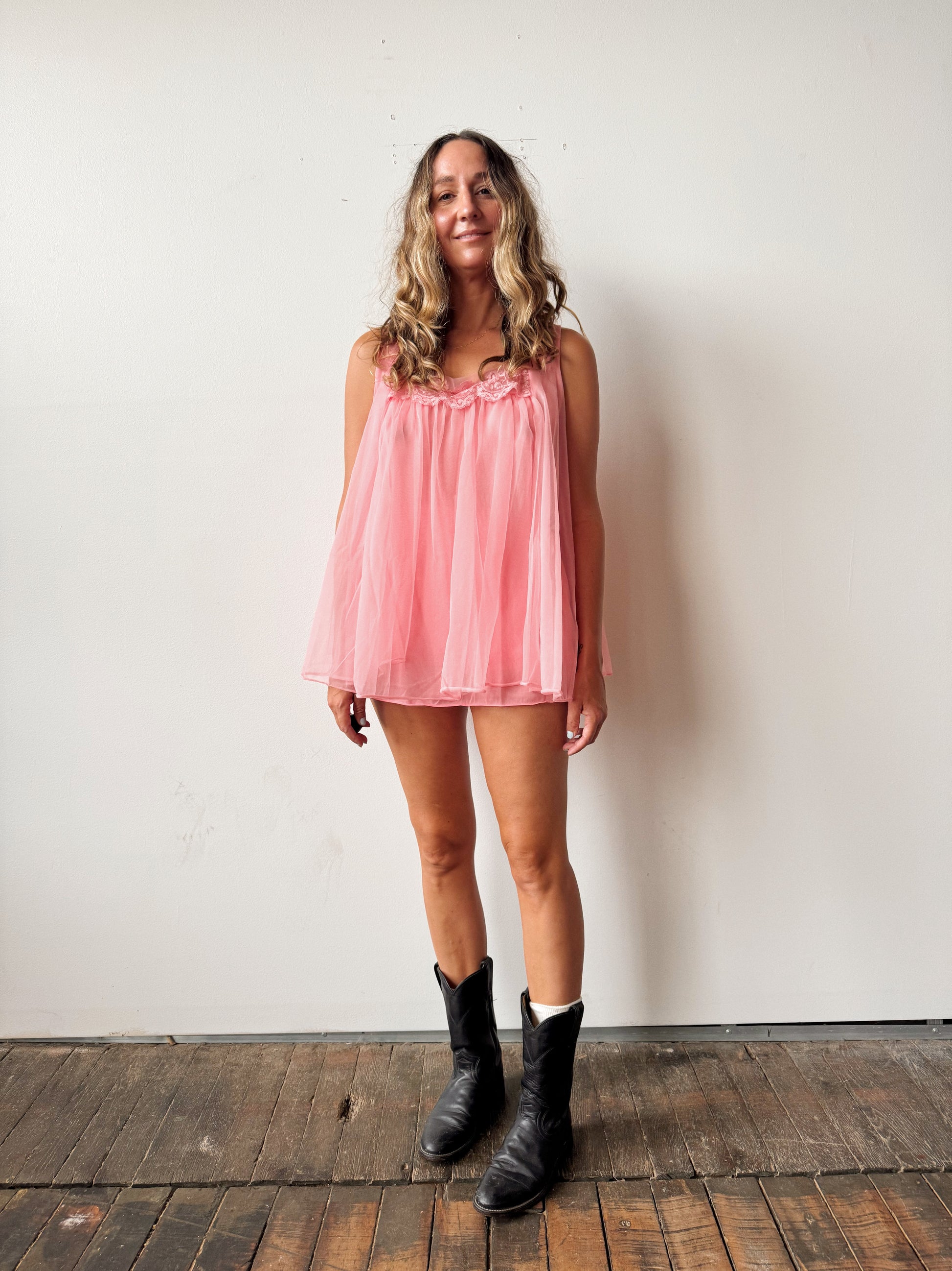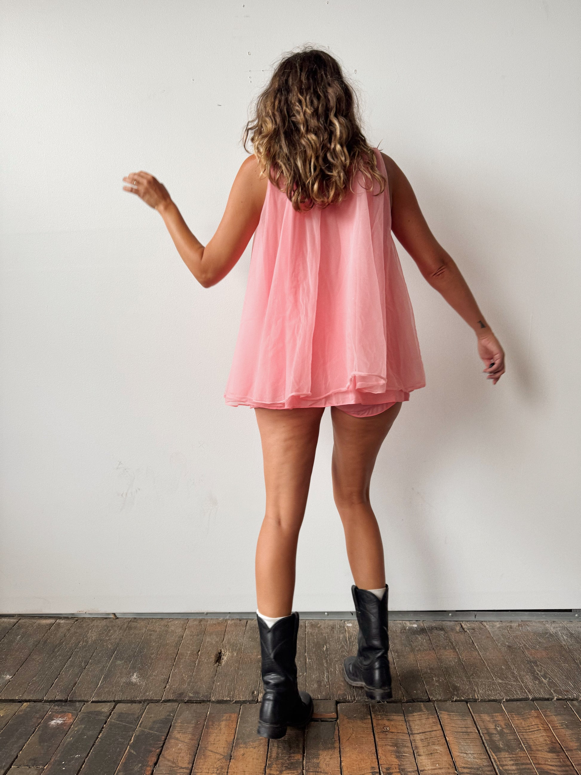 Hot Pink 60s Chiffon Lingerie Panty Set (M)