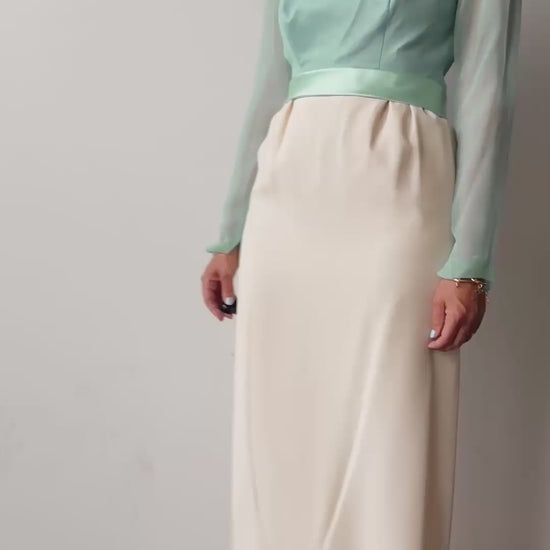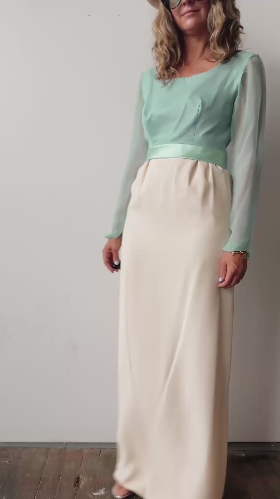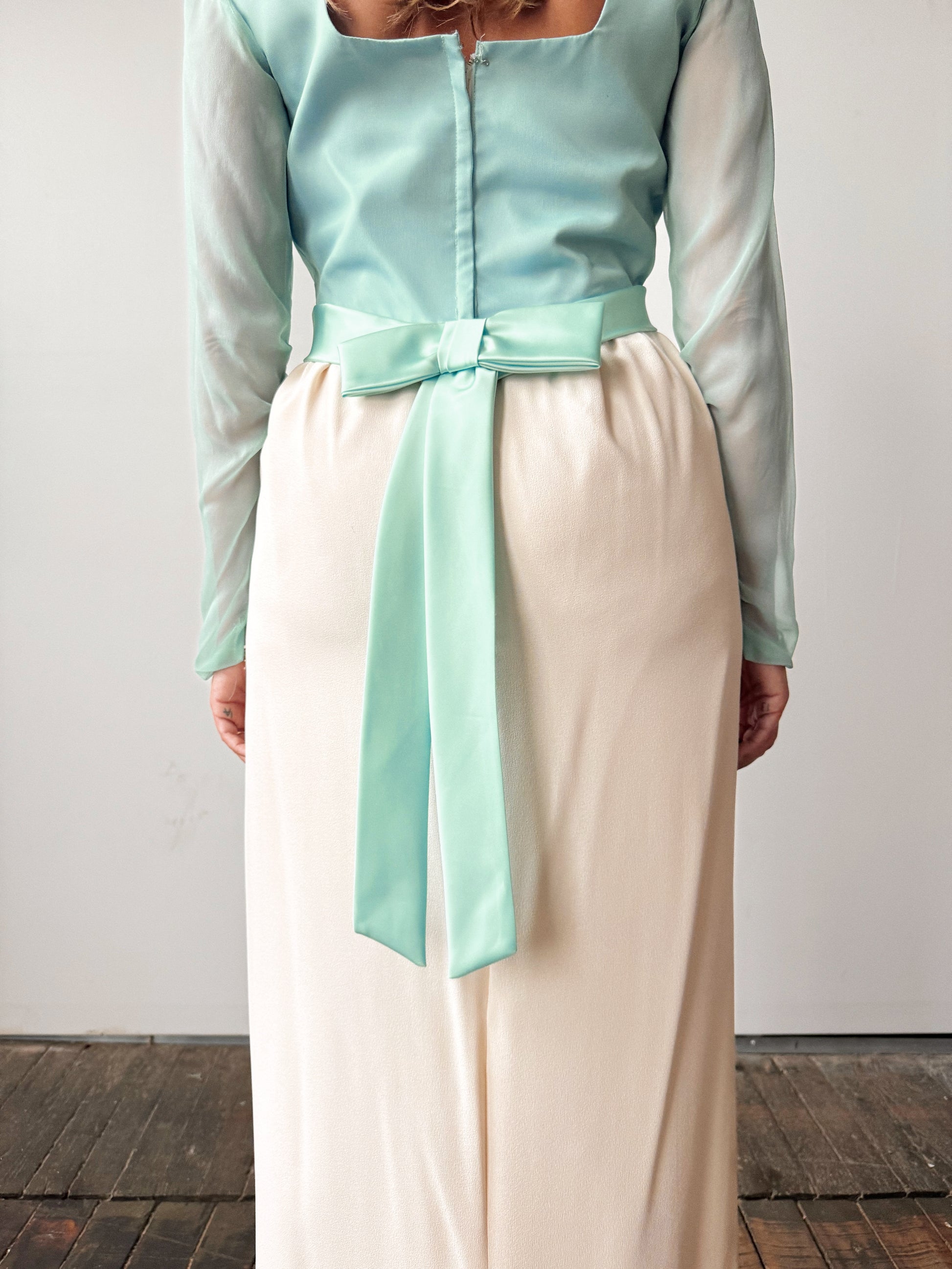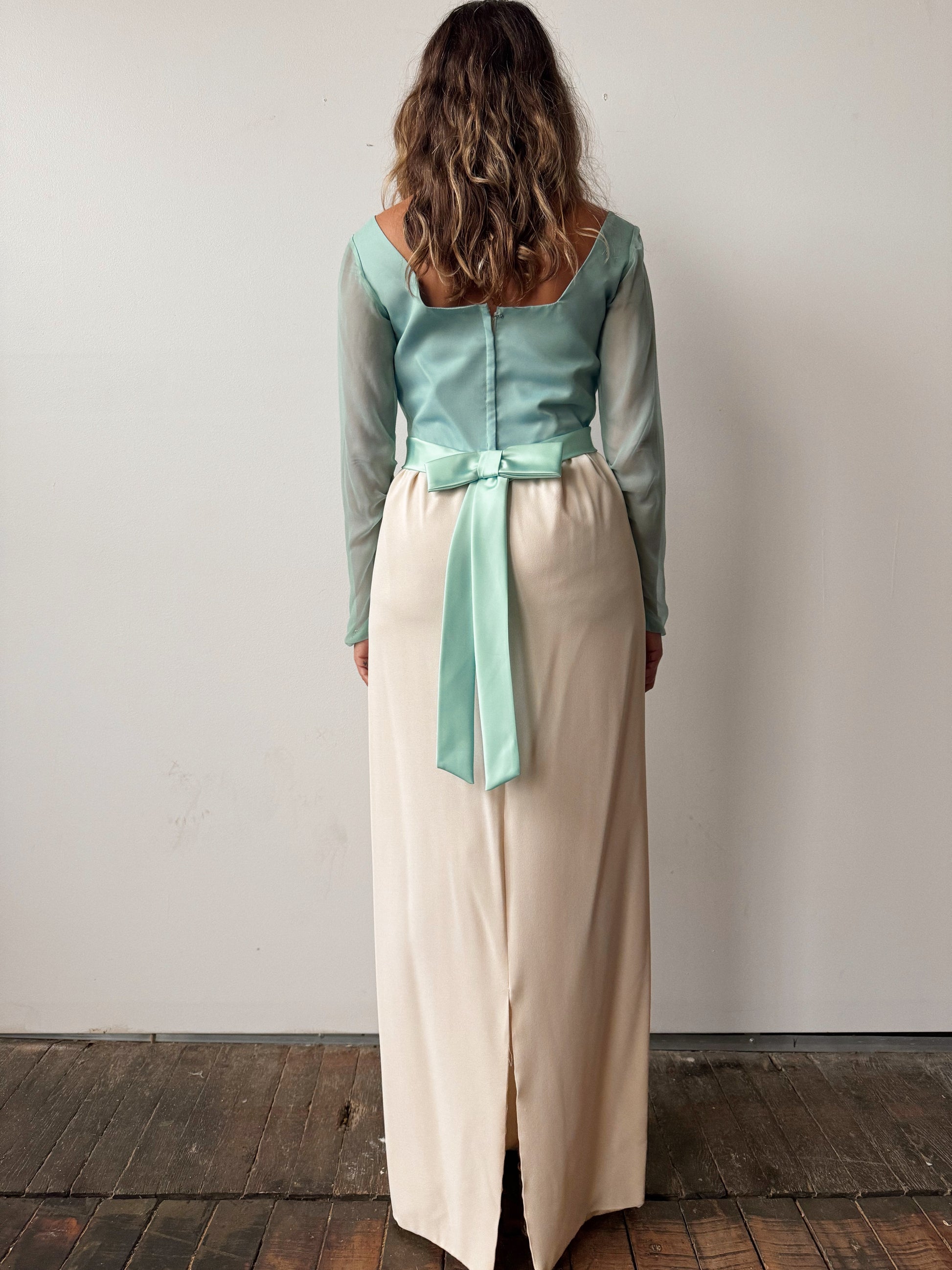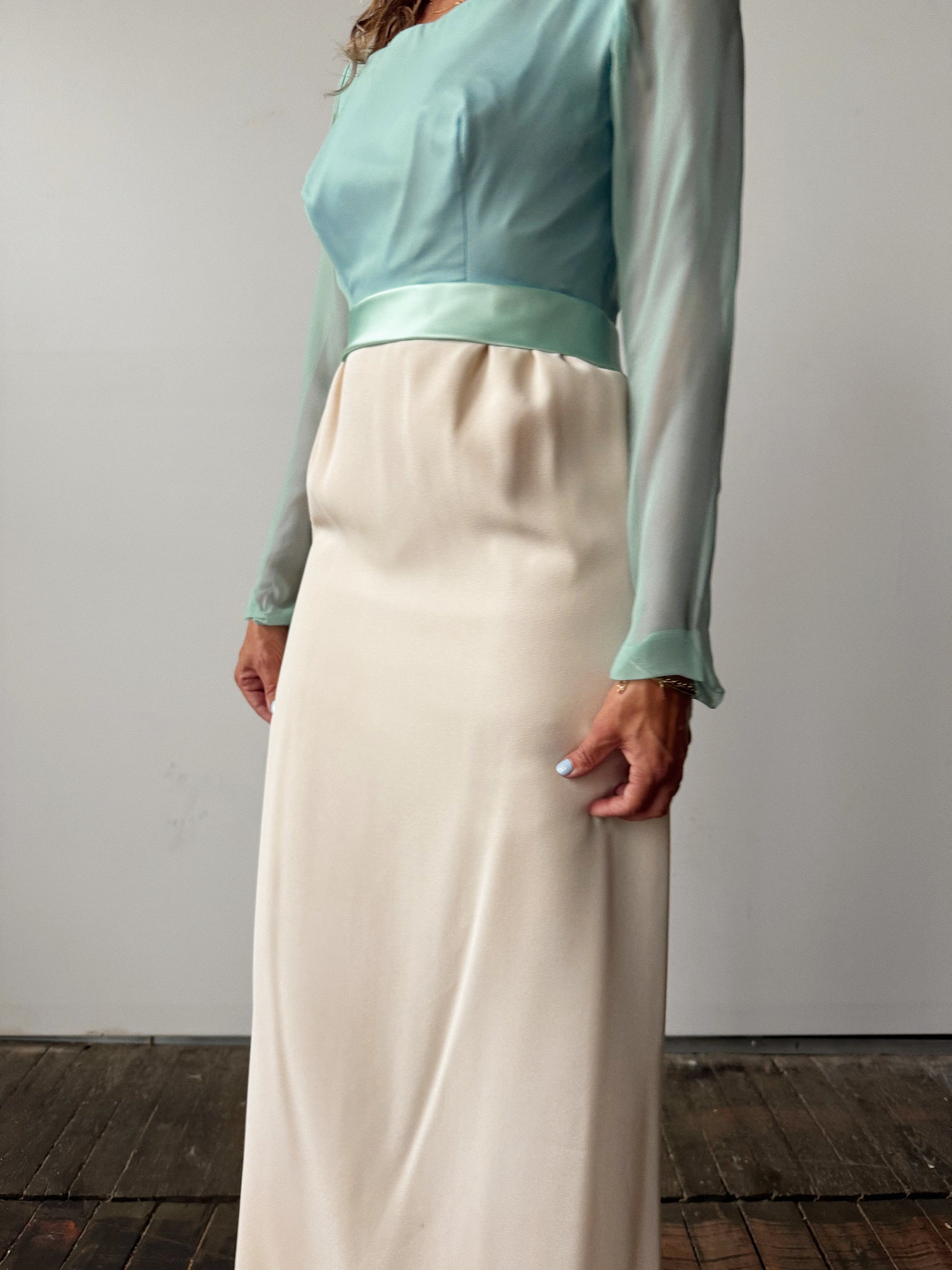 Chiffon 60s Seafoam and Cream Formal Dress (M)