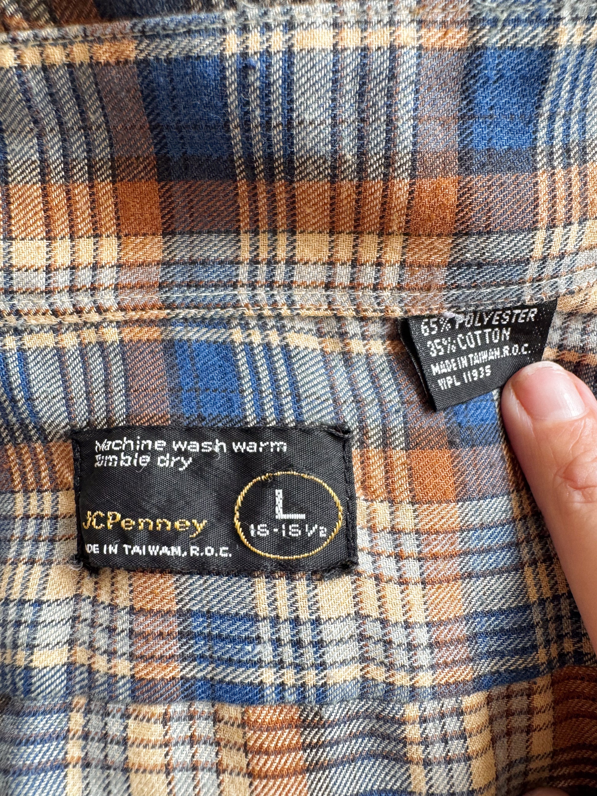 70s Plaid Flannel JCPenney Button Shirt (Mens L)