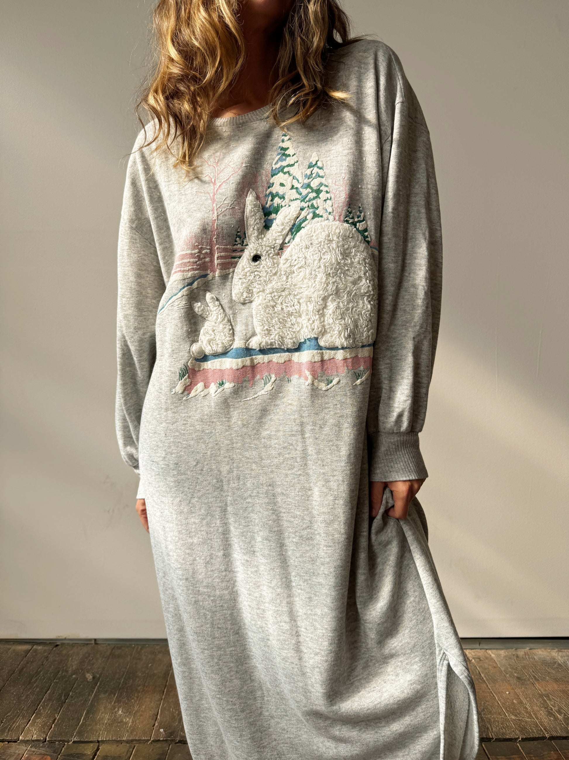 Vintage Catnaps Fleece Grey Nightgown (L)