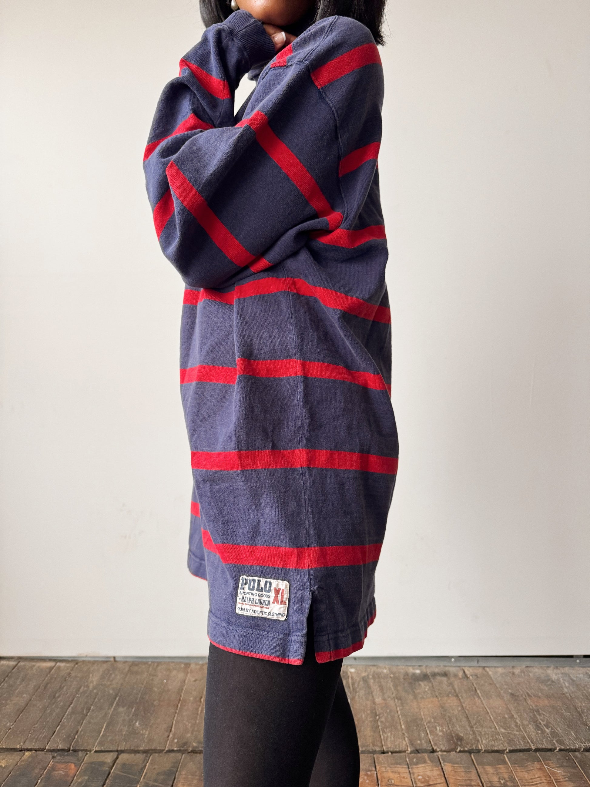 Heavyweight 90s Cotton USA Made Striped Polo Shirt (XL)