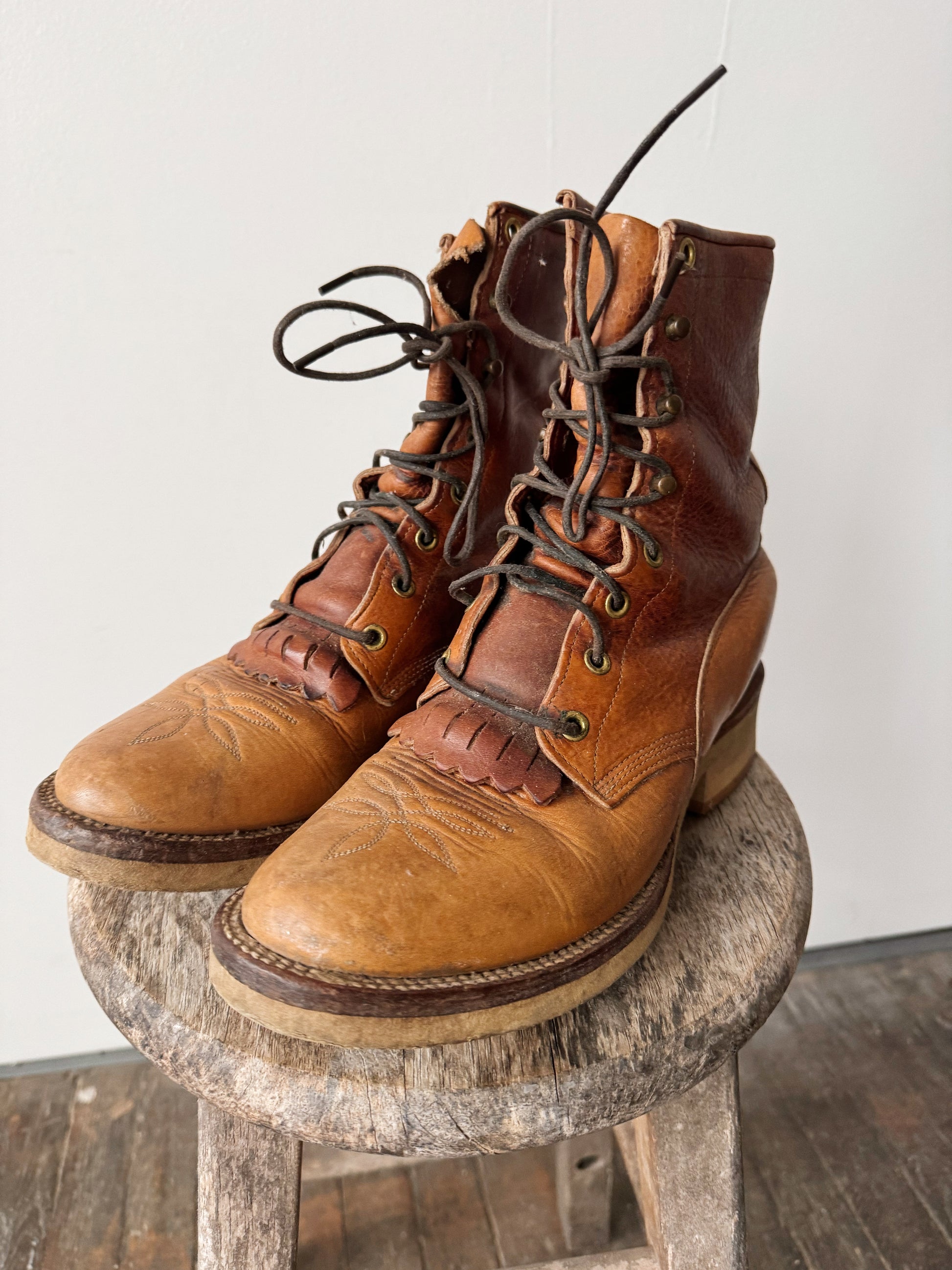 90s Leather Roper Lace-up Boot (8.5)