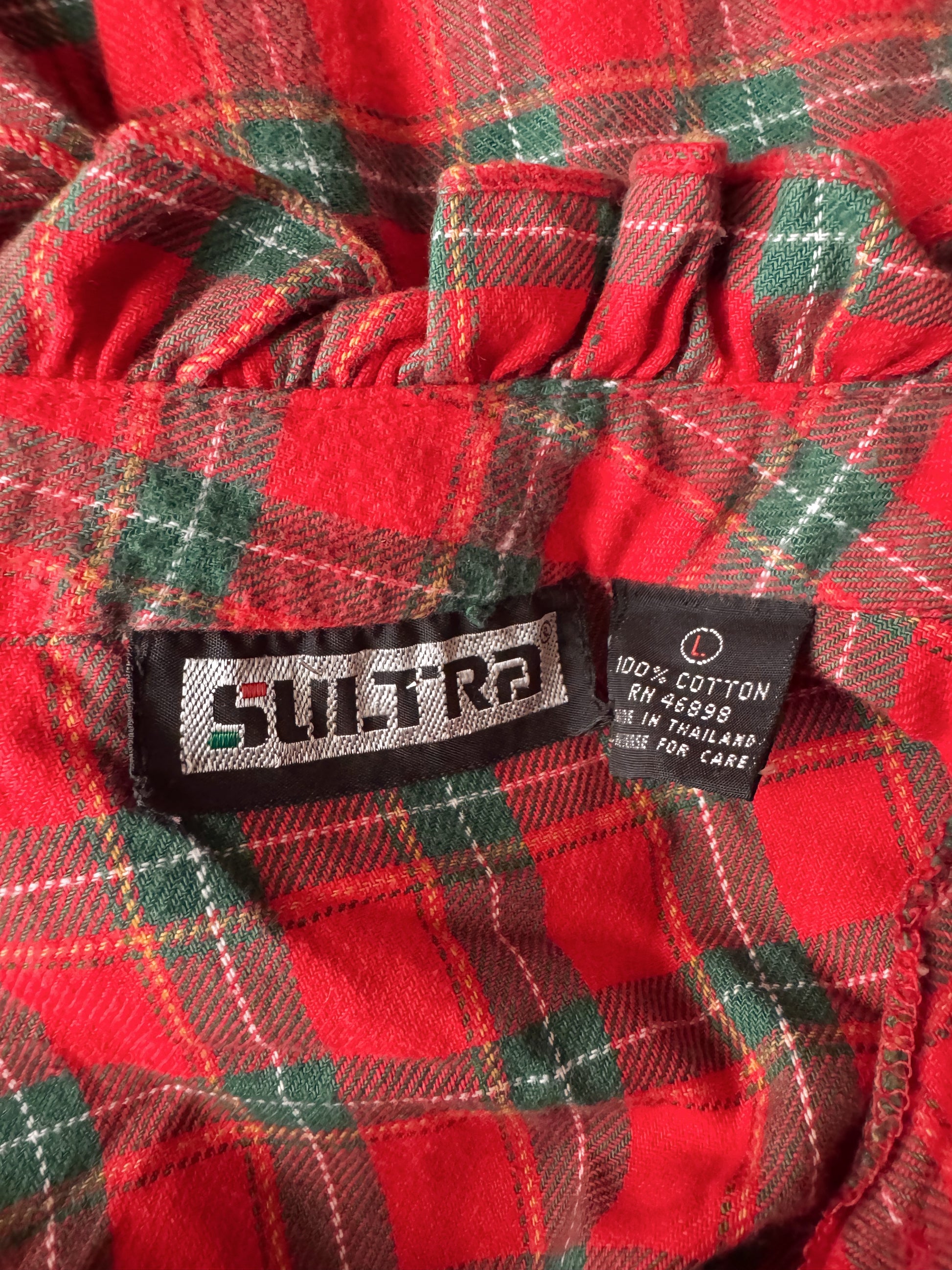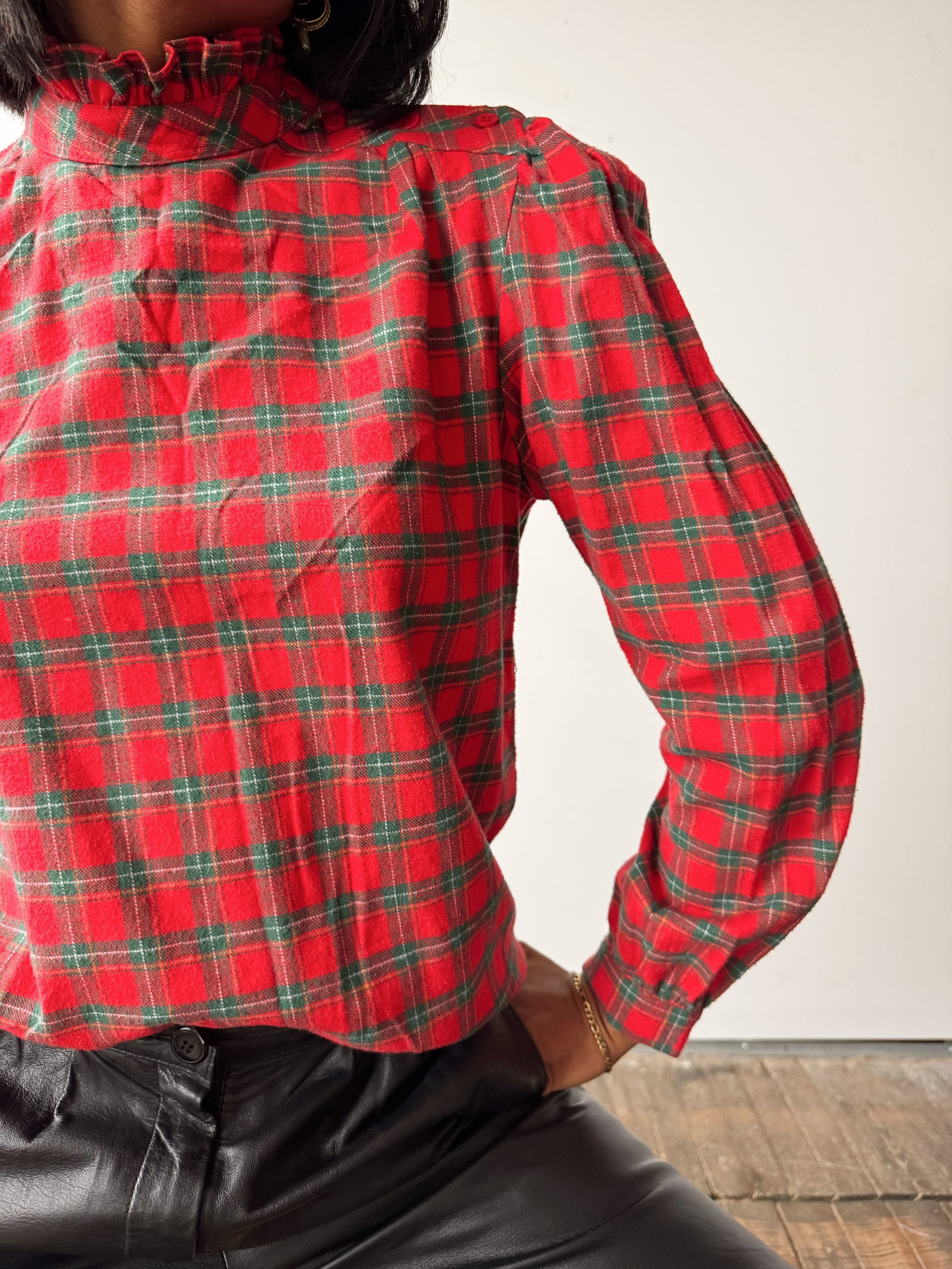 Holiday Plaid and Ruffle Collar Blouse (M)