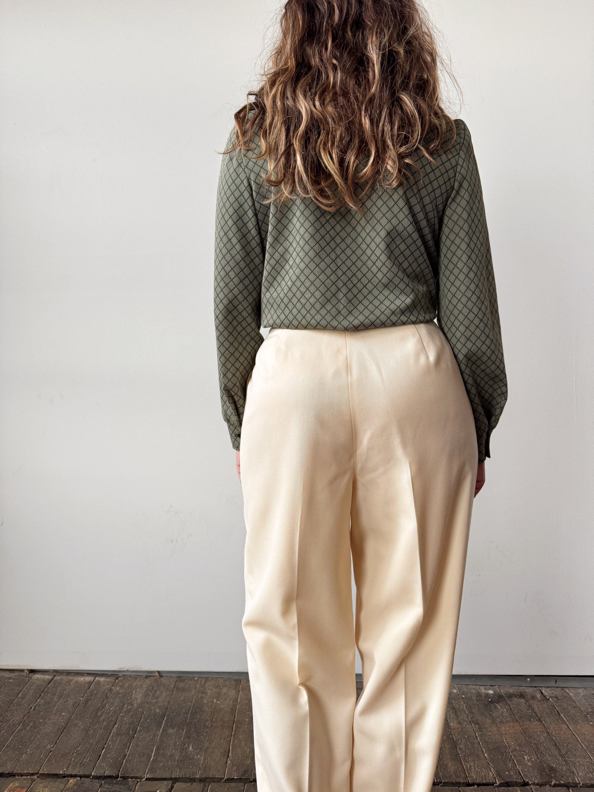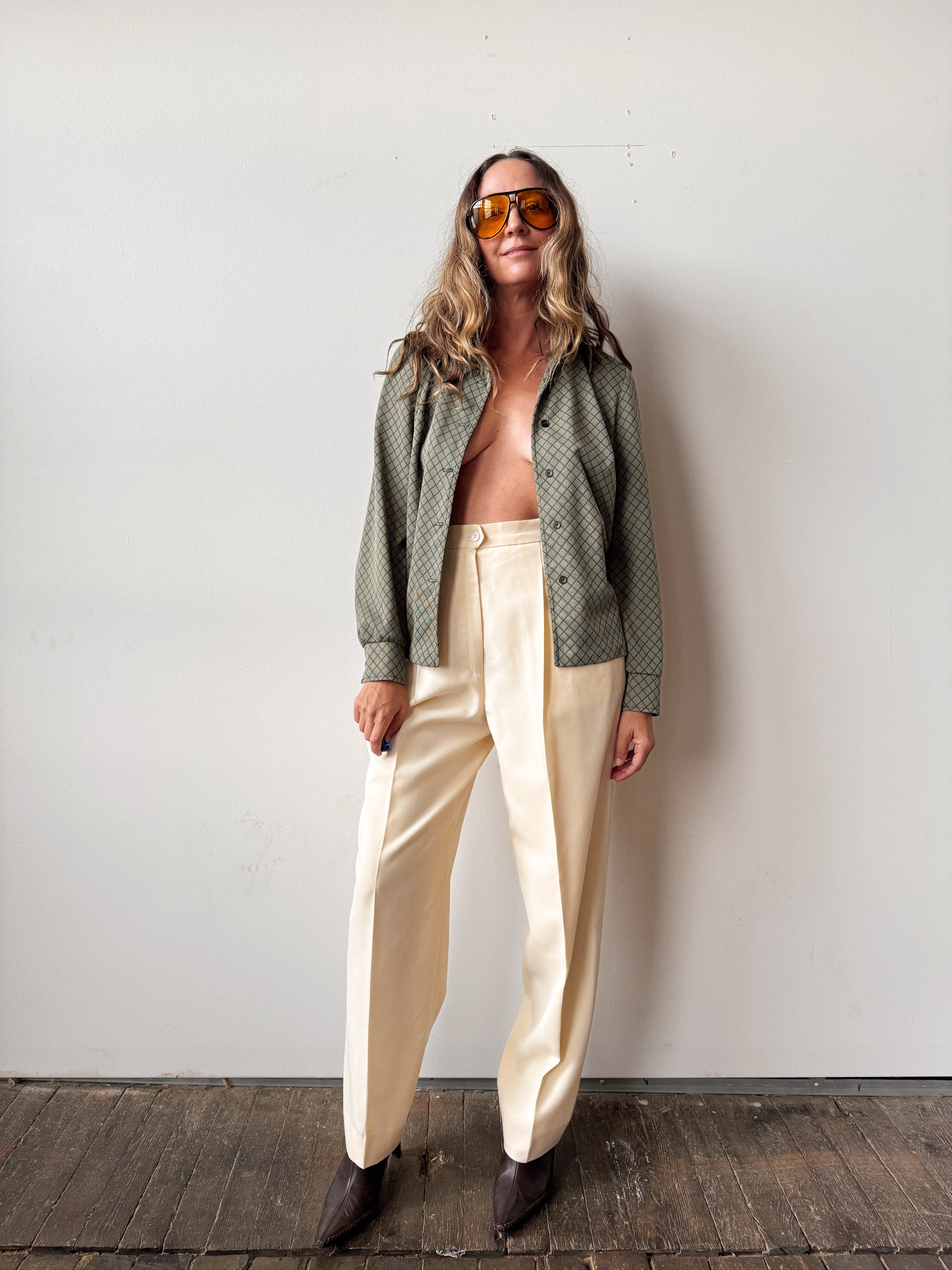 70s Green Herringbone Blouse (XS)