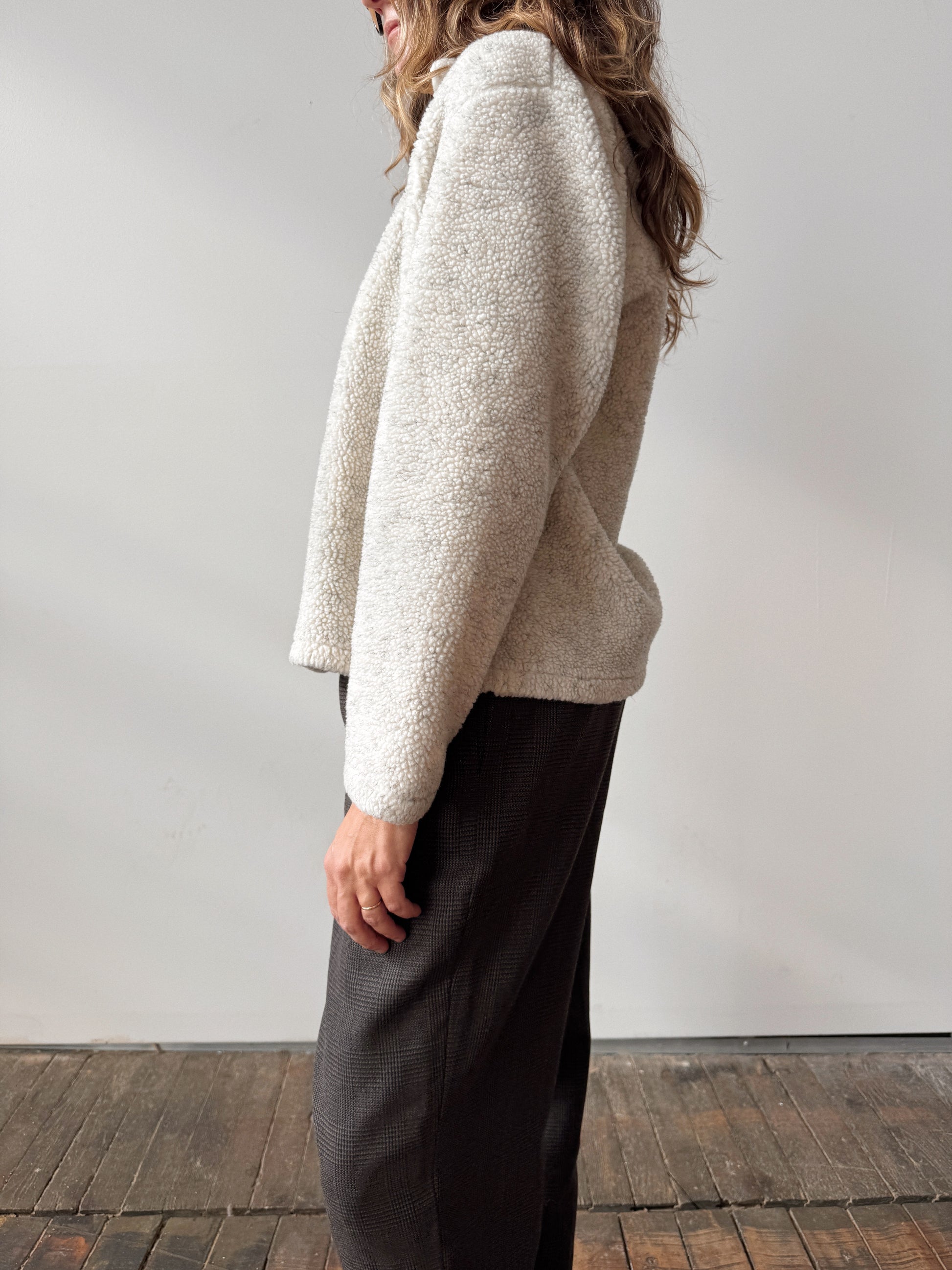 Oatmeal Boucle Snap Front Sweater Jacket (S)